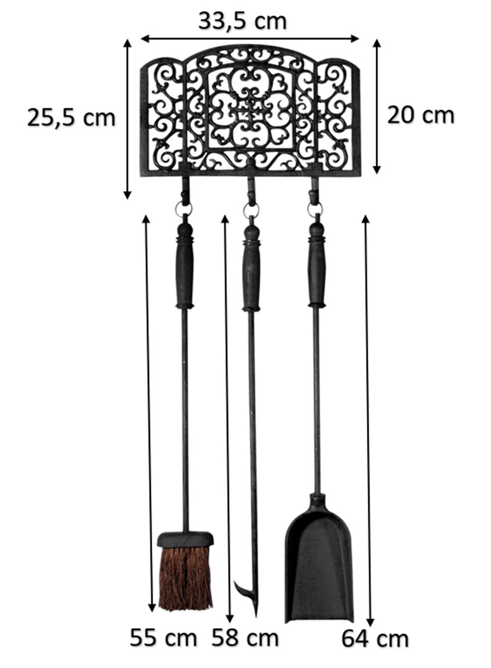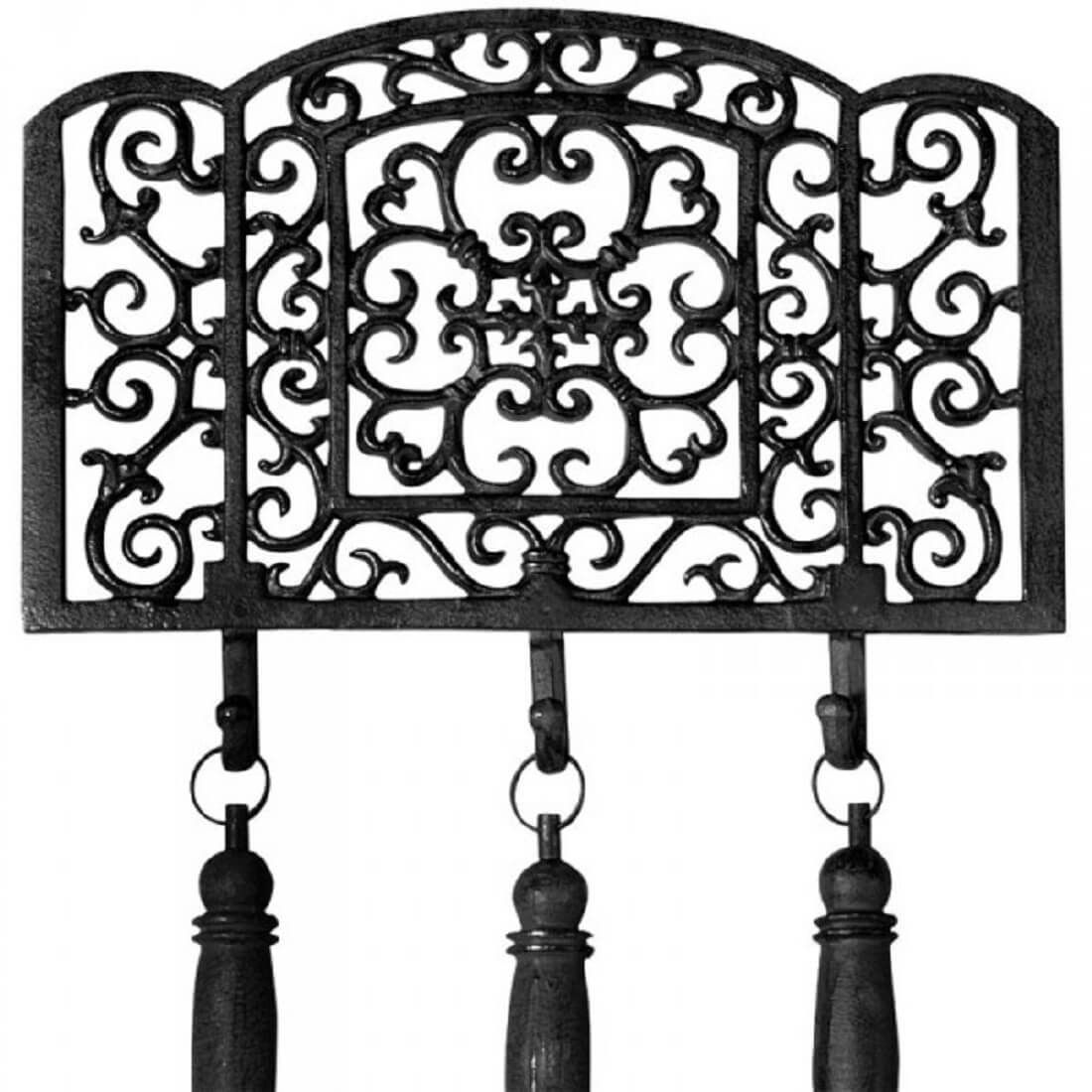 Schwarzes Gusseisen Kaminbesteck mit Platzsparender Wandhalterung