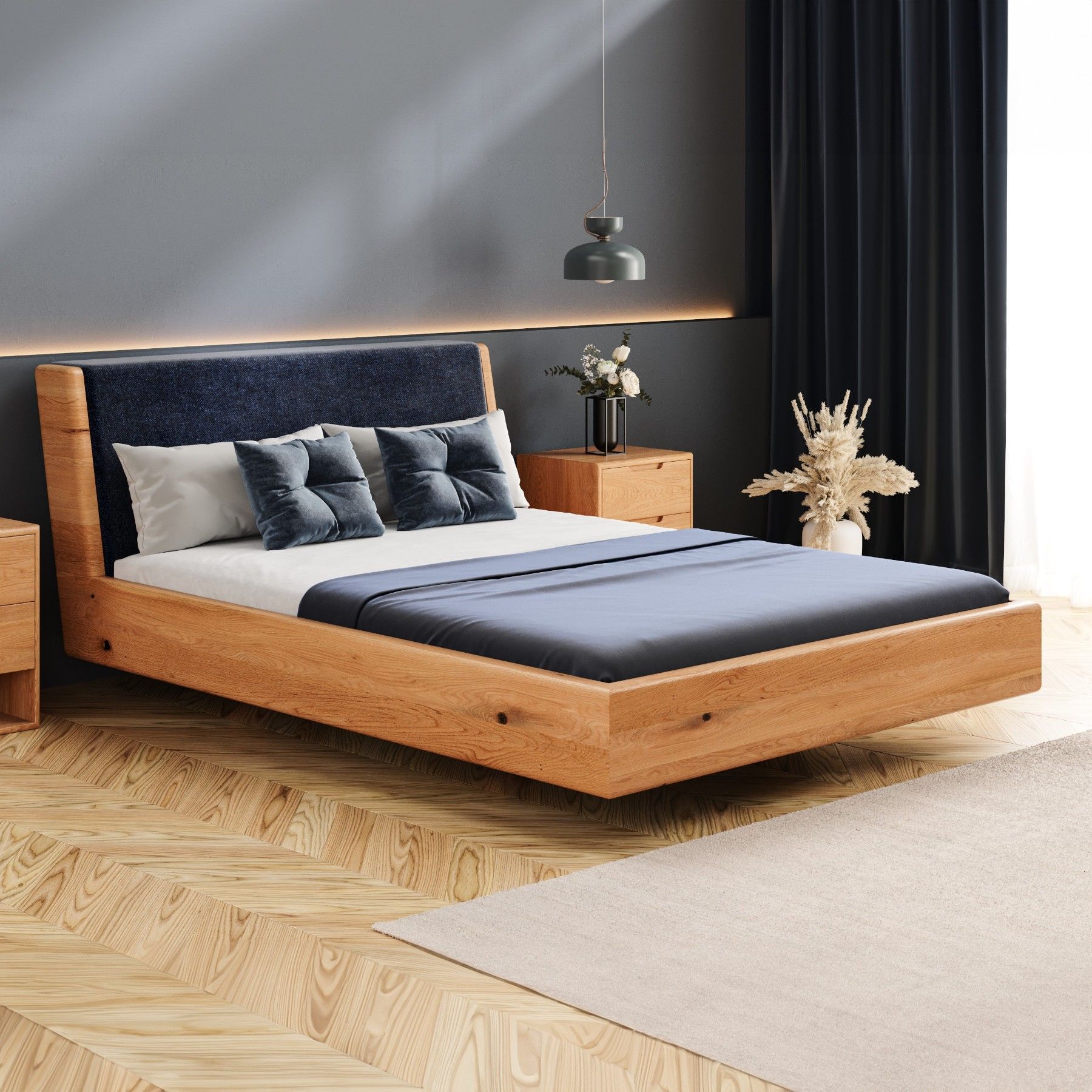 Schwebebett Aura Tilt, Massivholz Eiche