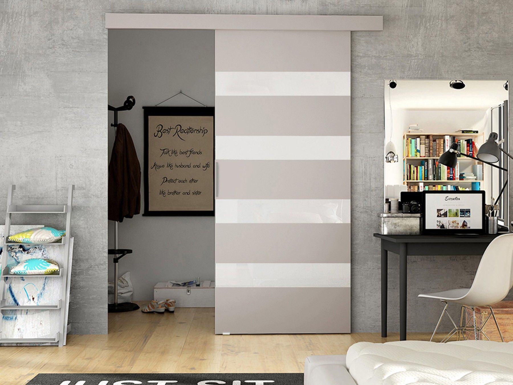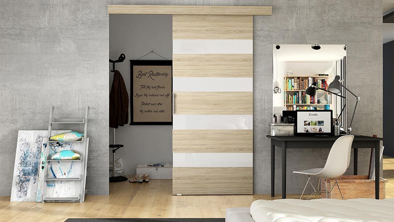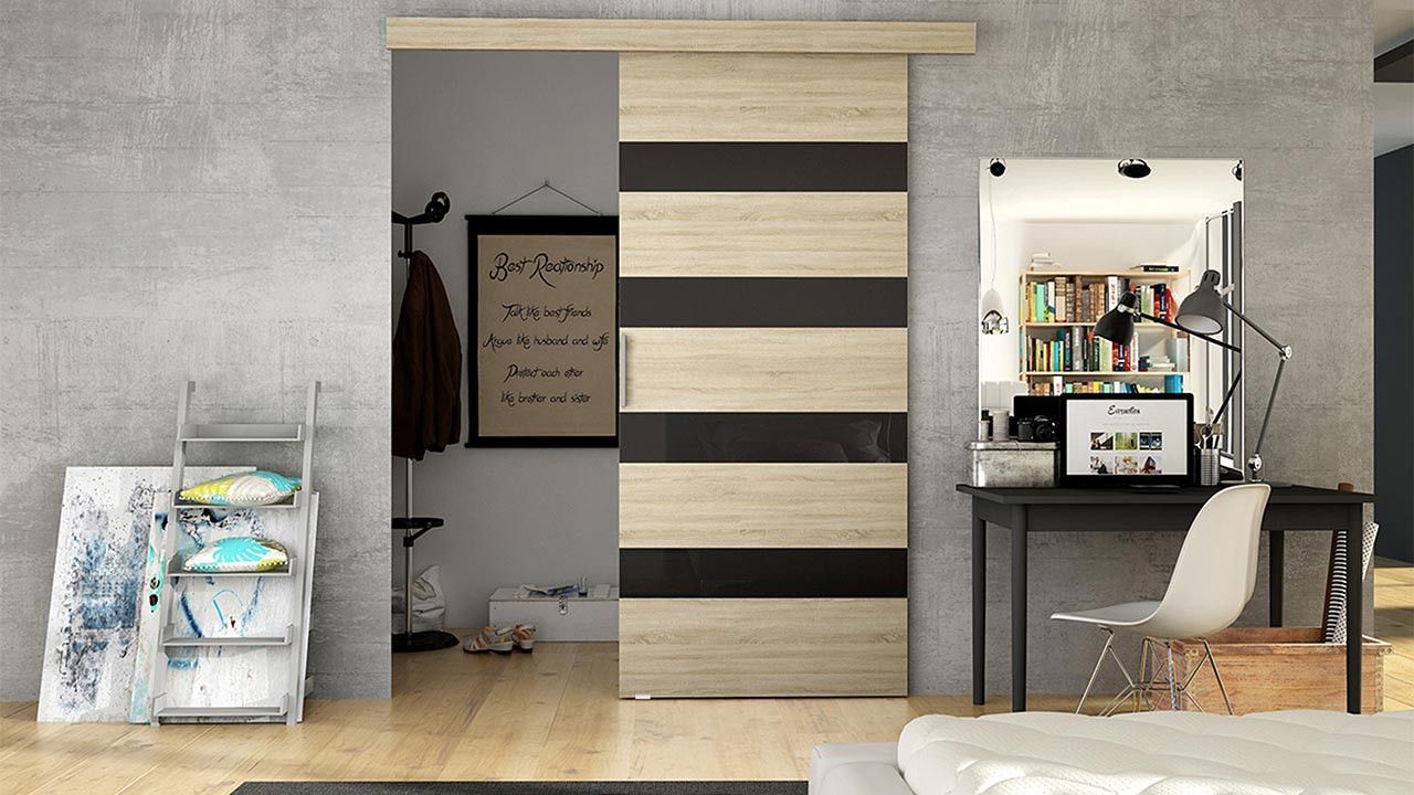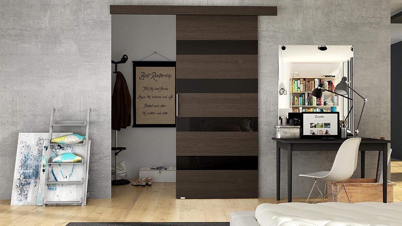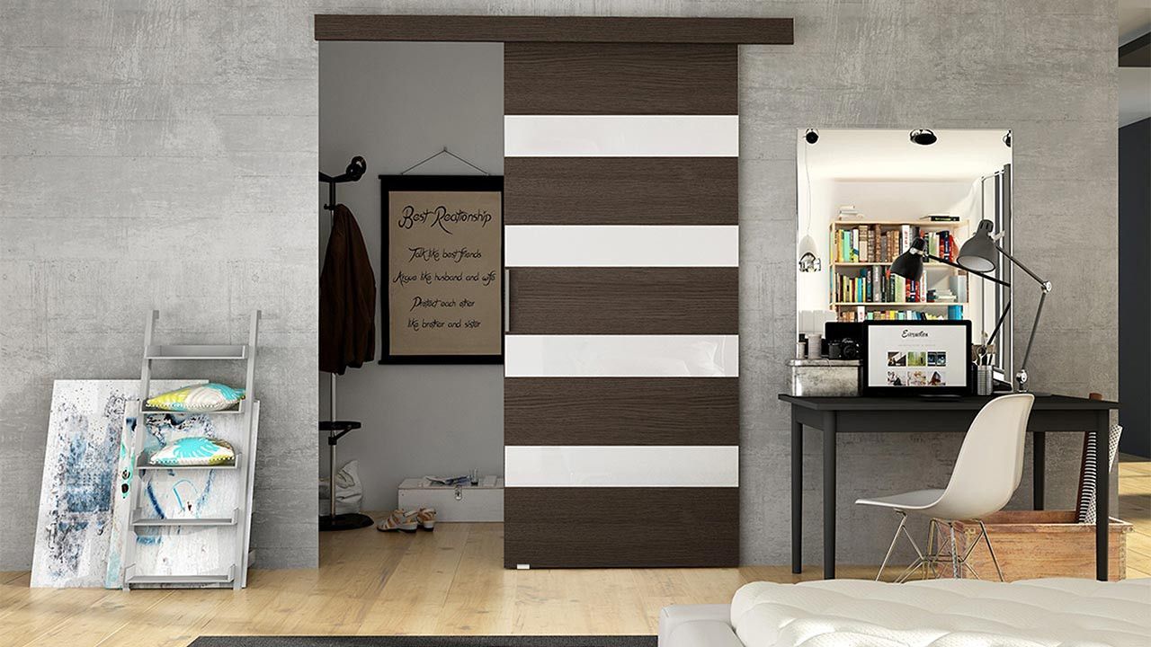 • Schwebetür Belor, Schiebetürsystem, Schiebetür mit Lamellen, Design Zimmertür