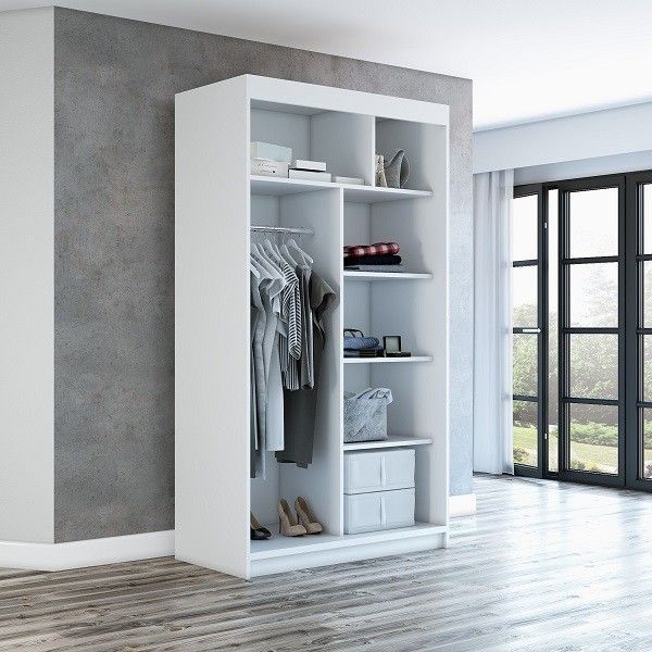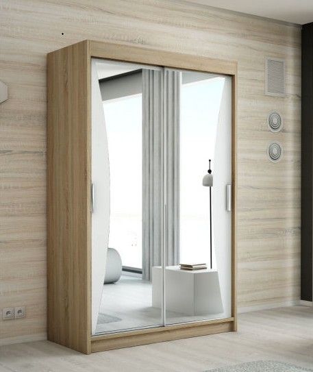 Schwebetürenschrank, 2-türig Schrank mit Spiegel- NIKO 120 cm