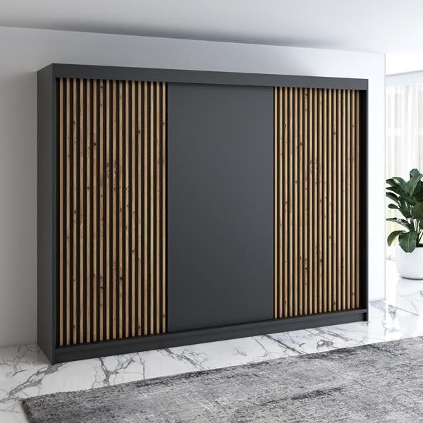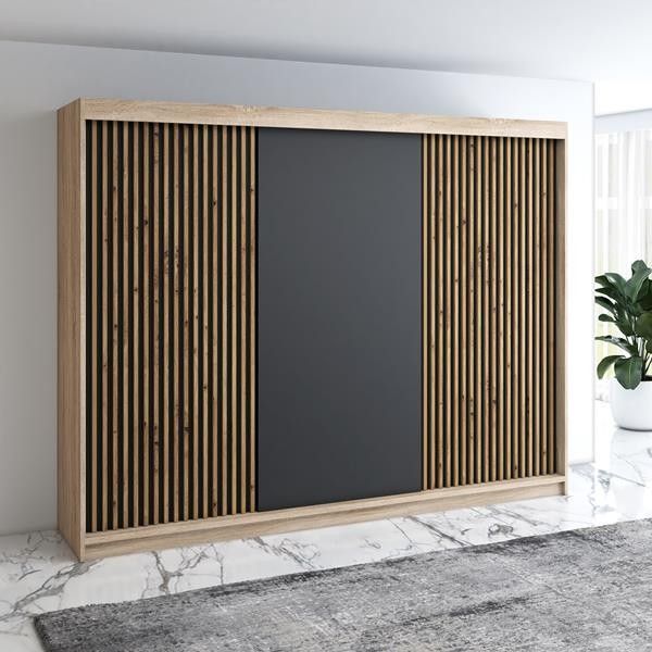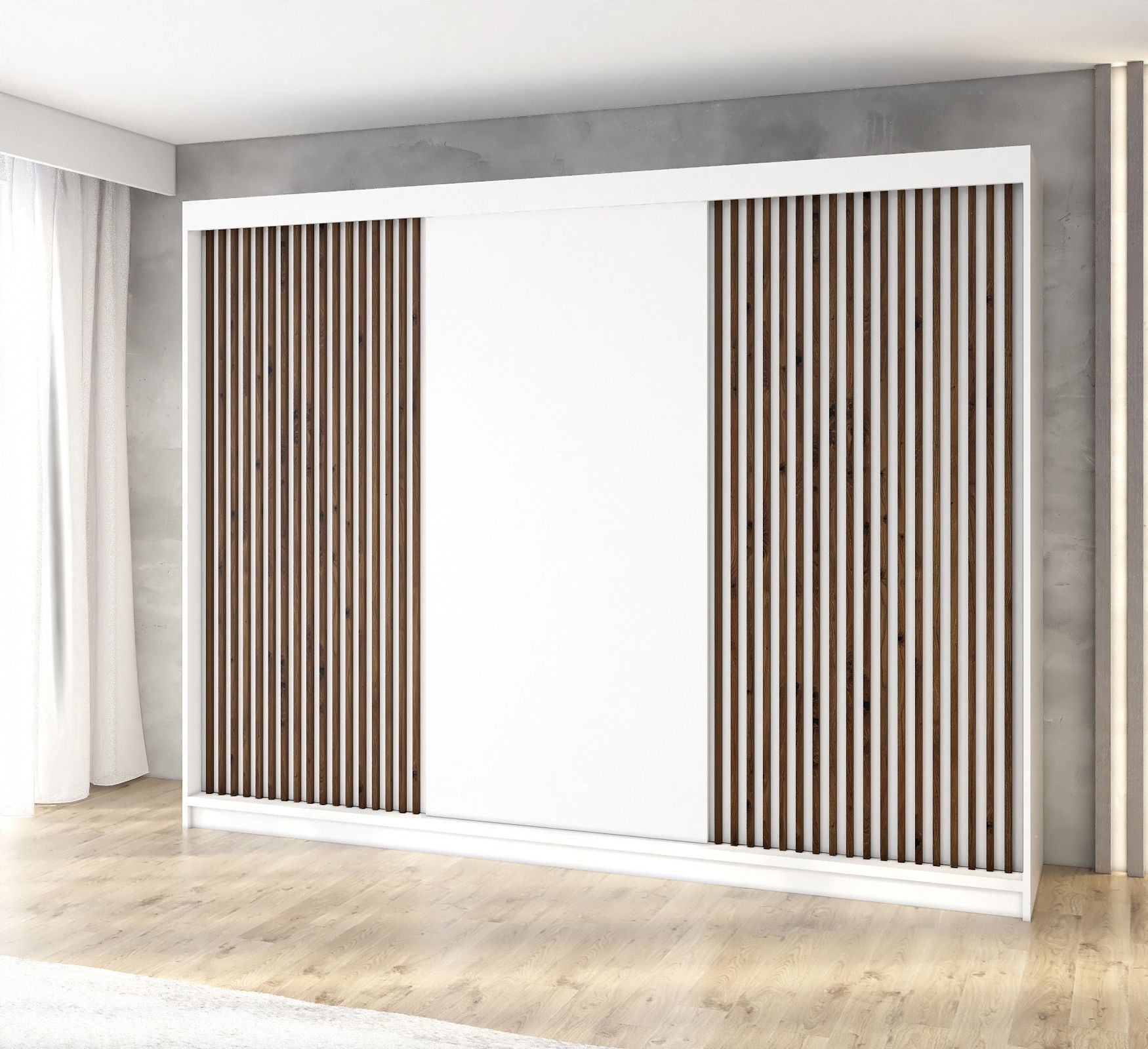 Schwebetürenschrank, 3-türig Schrank 200 cm mit 4 Schubladen, und 3D-Lamellen- IOSA