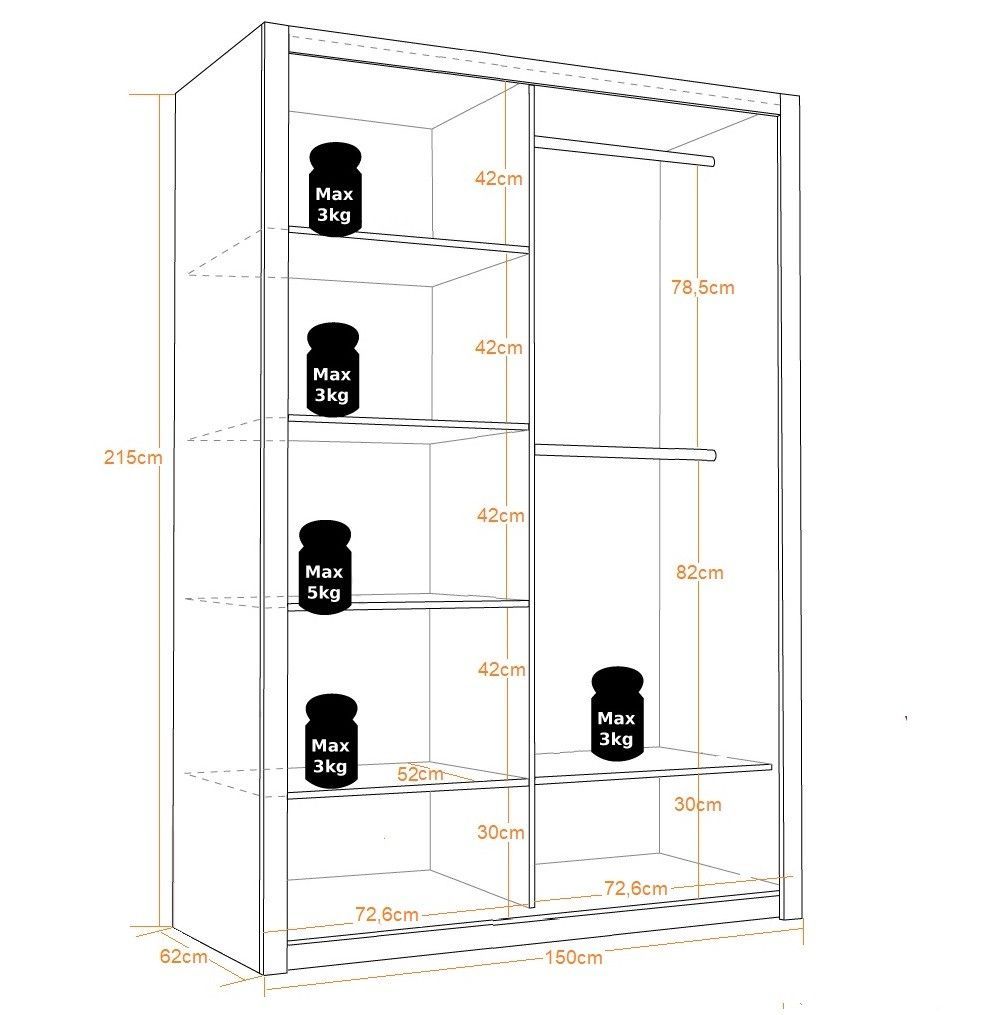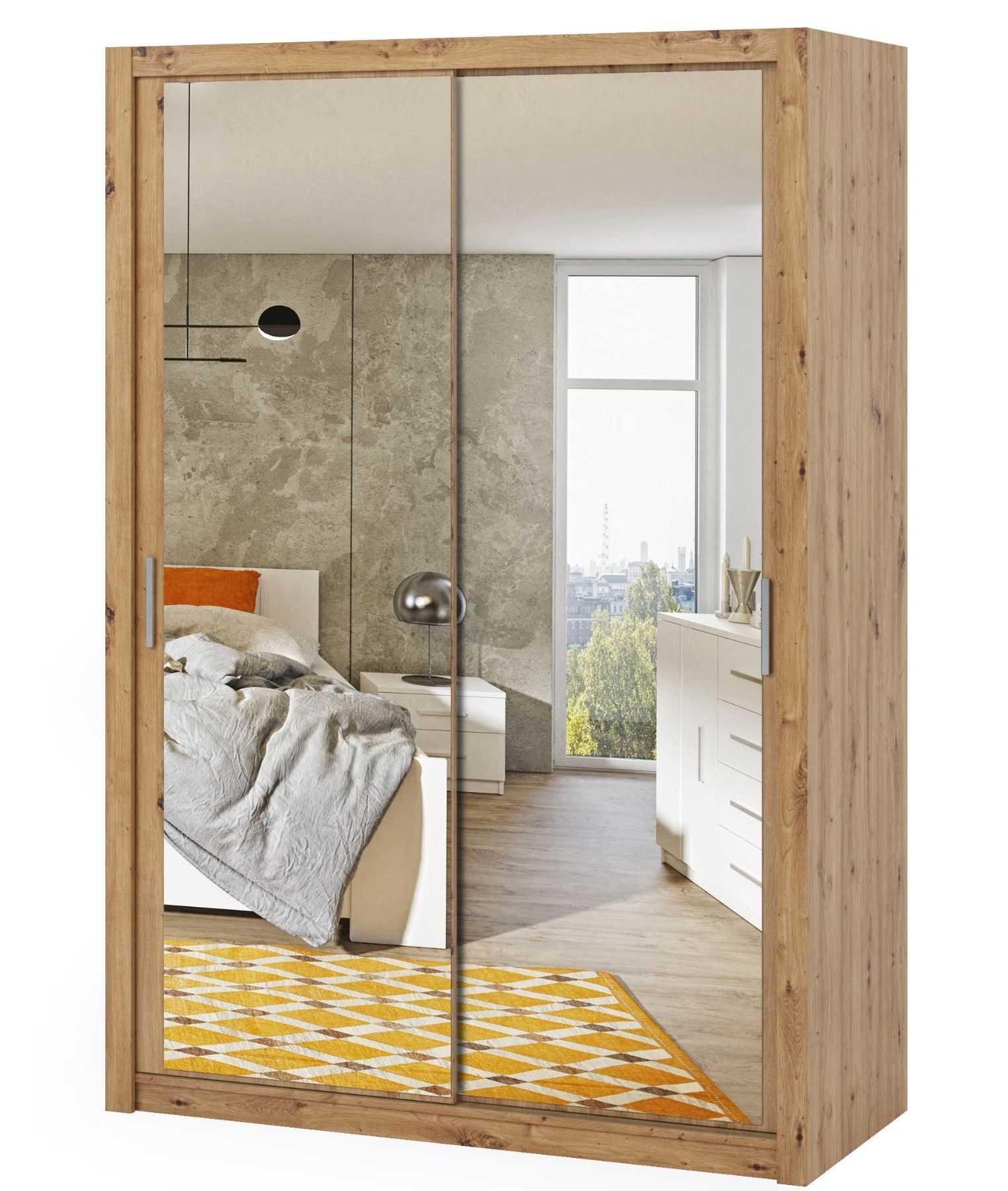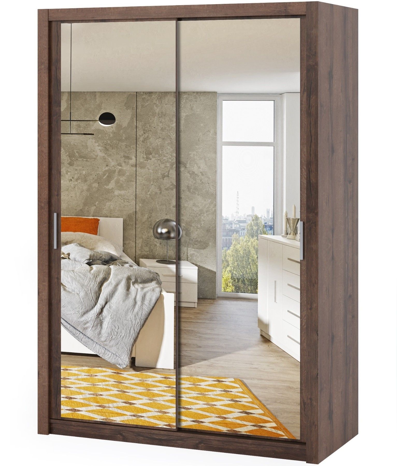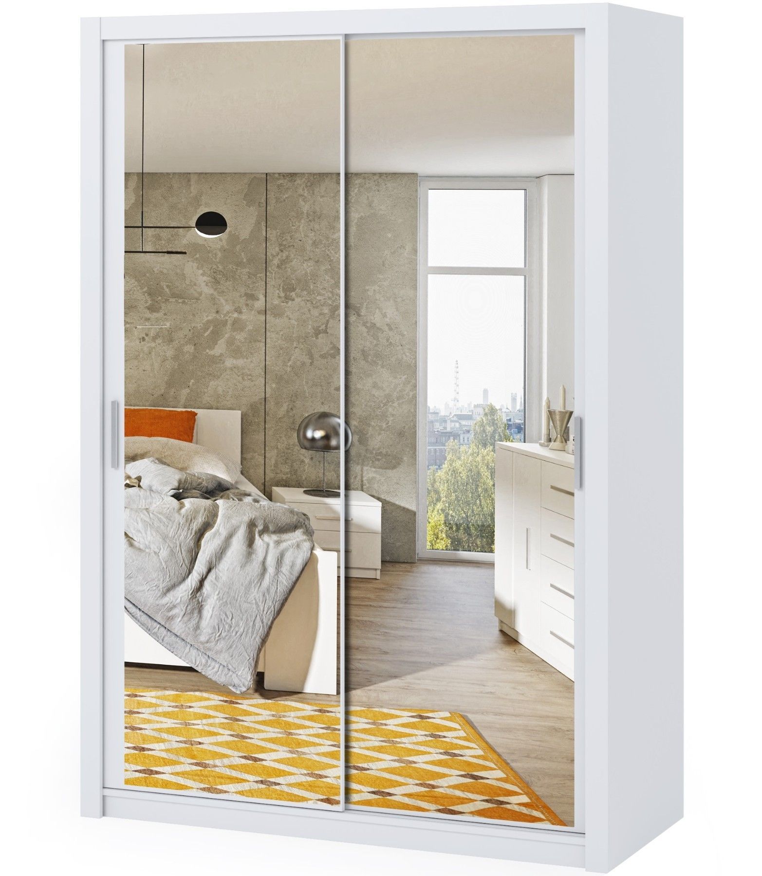 Schwebetürenschrank BONO 150cm Spiegel, Schiebeschrank mit zwei Kleiderstangen