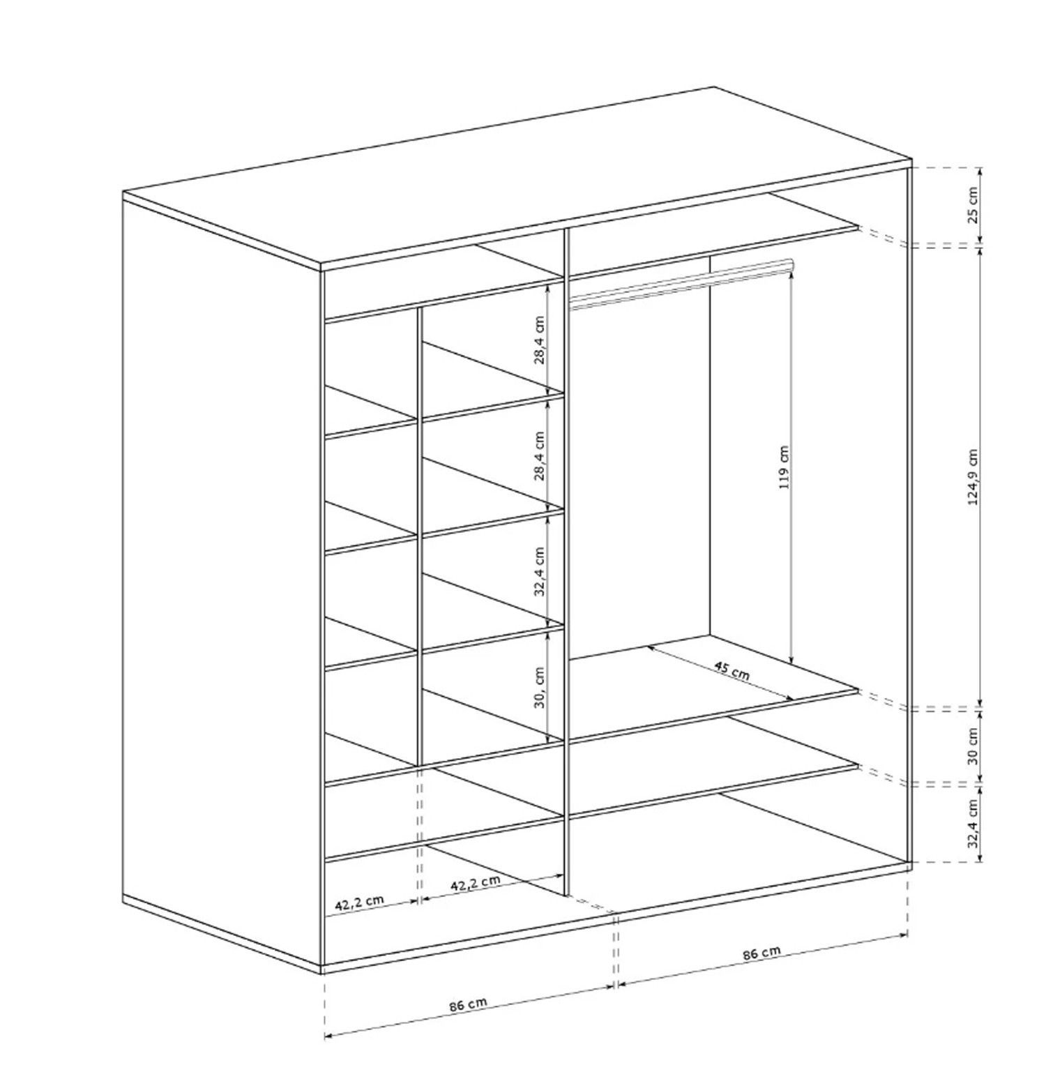 Schwebetürenschrank CALI 14 Großer Schiebetürenschrank mit Spiegel und Kleiderstange