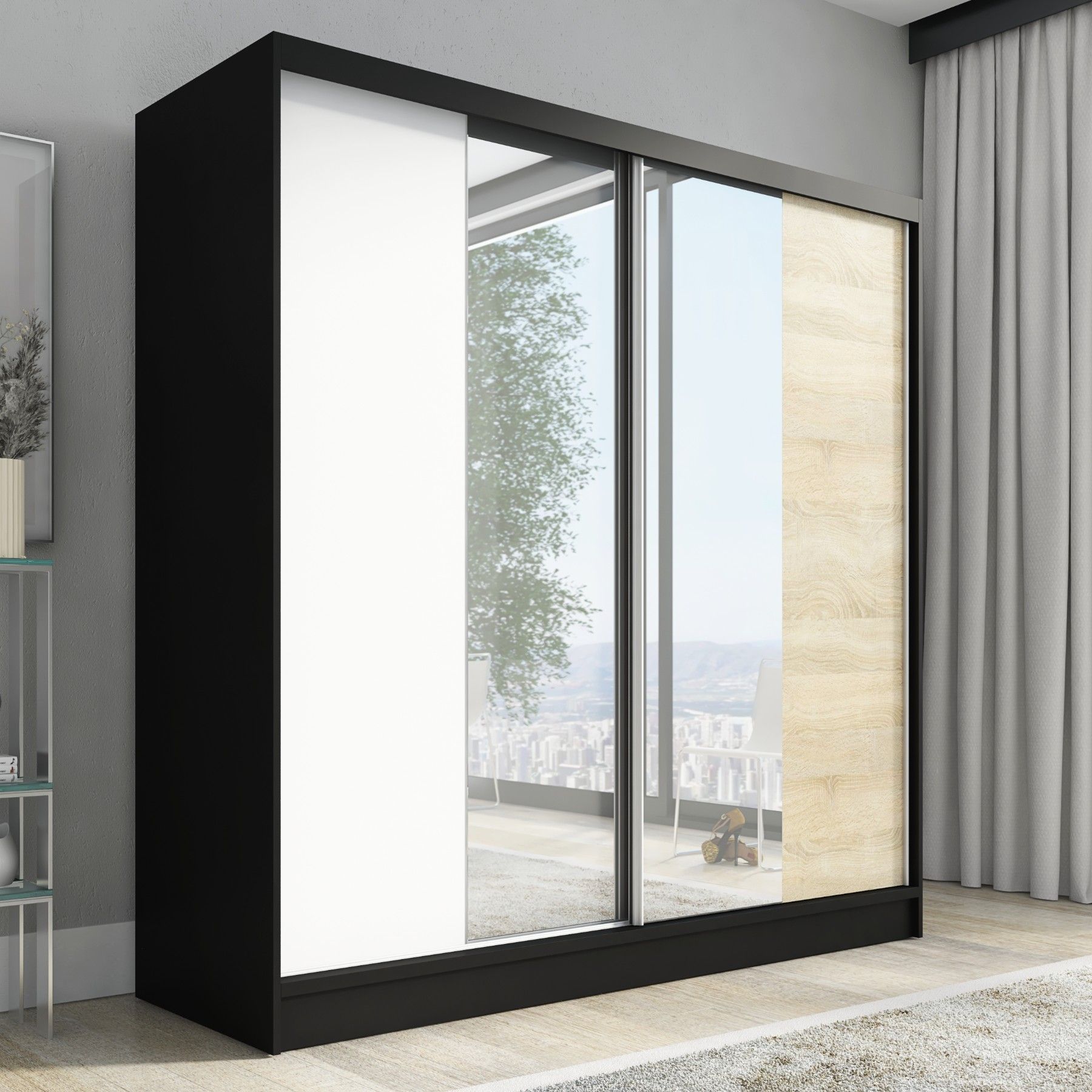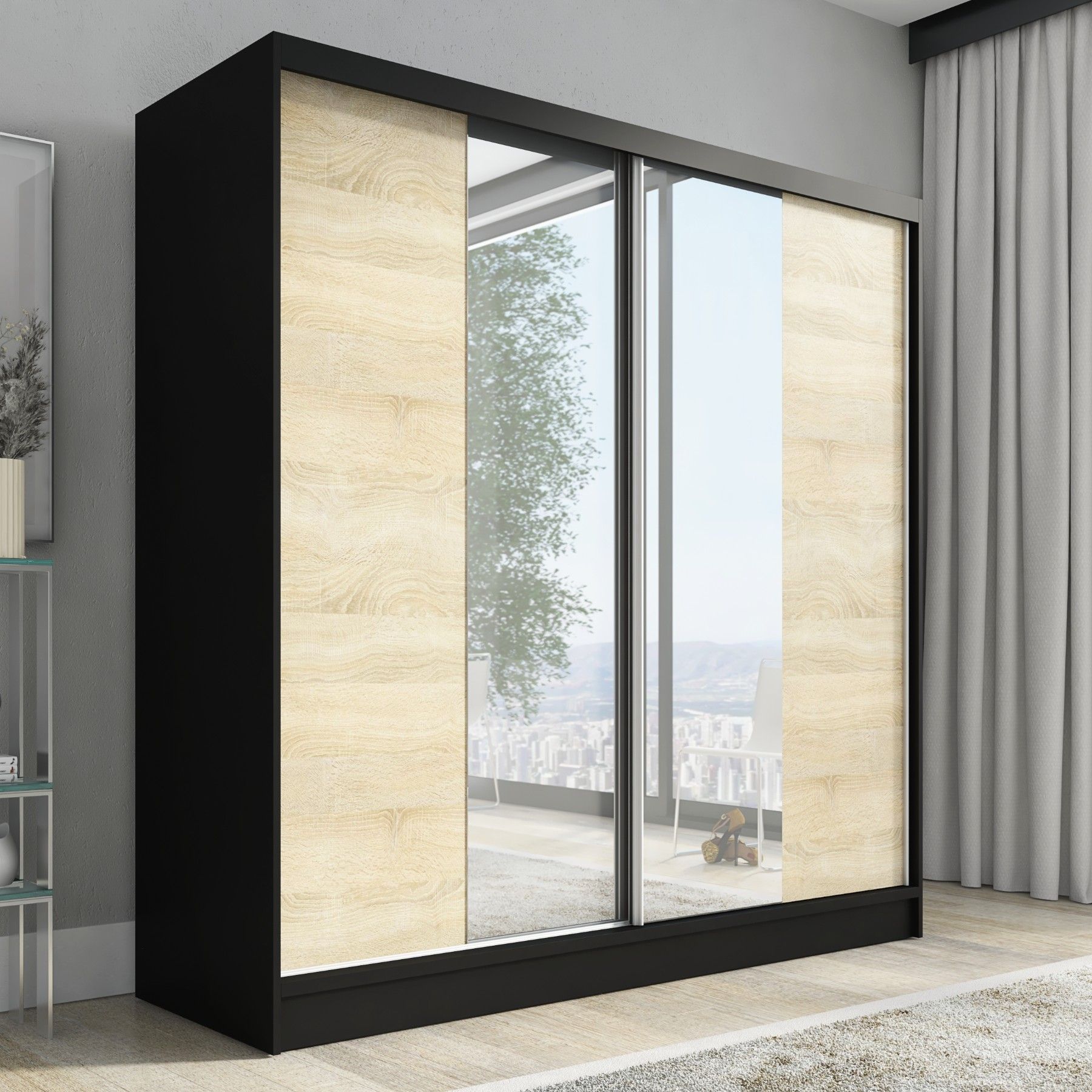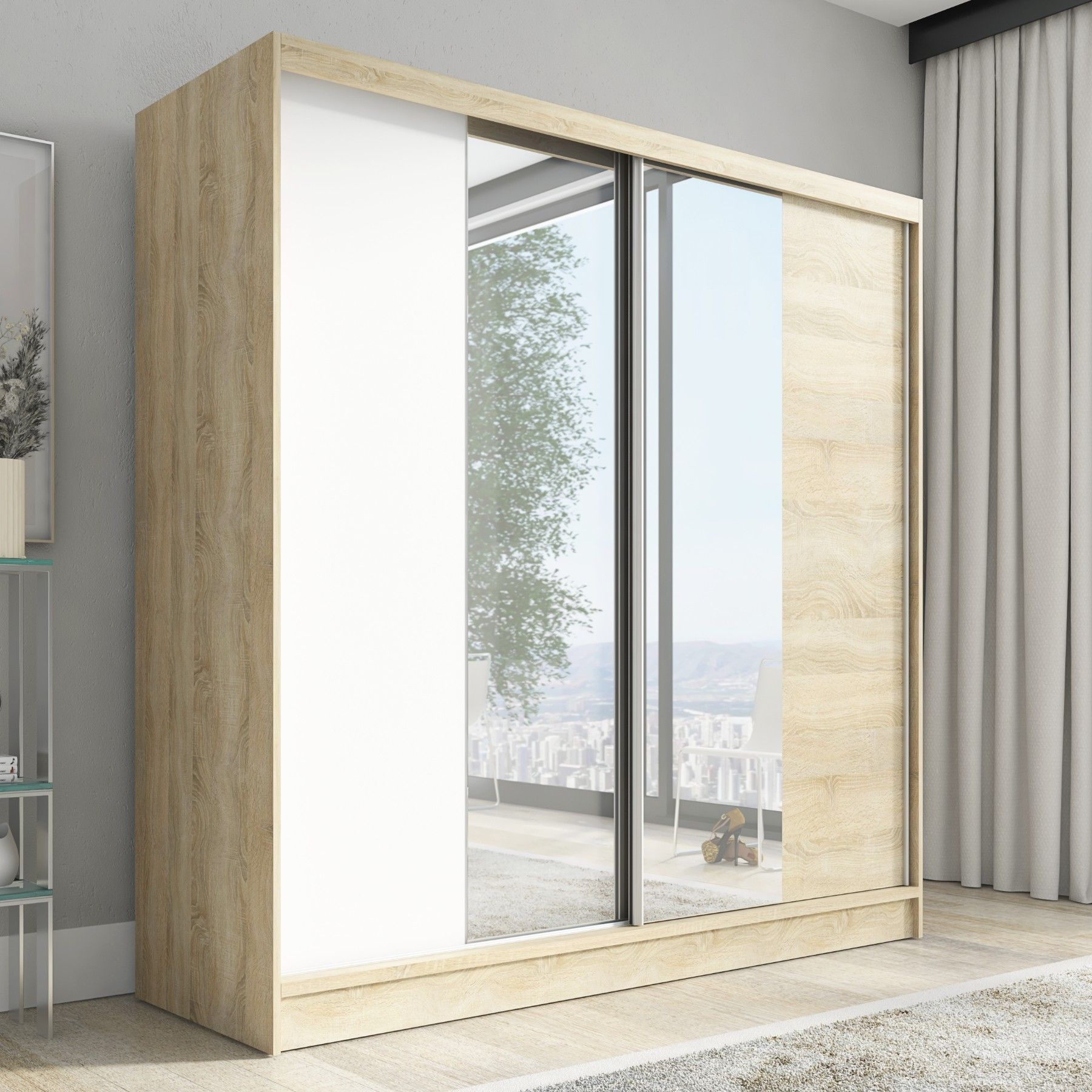 Schwebetürenschrank DUO, 2-türig Schrank 200 cm mit Spiegel