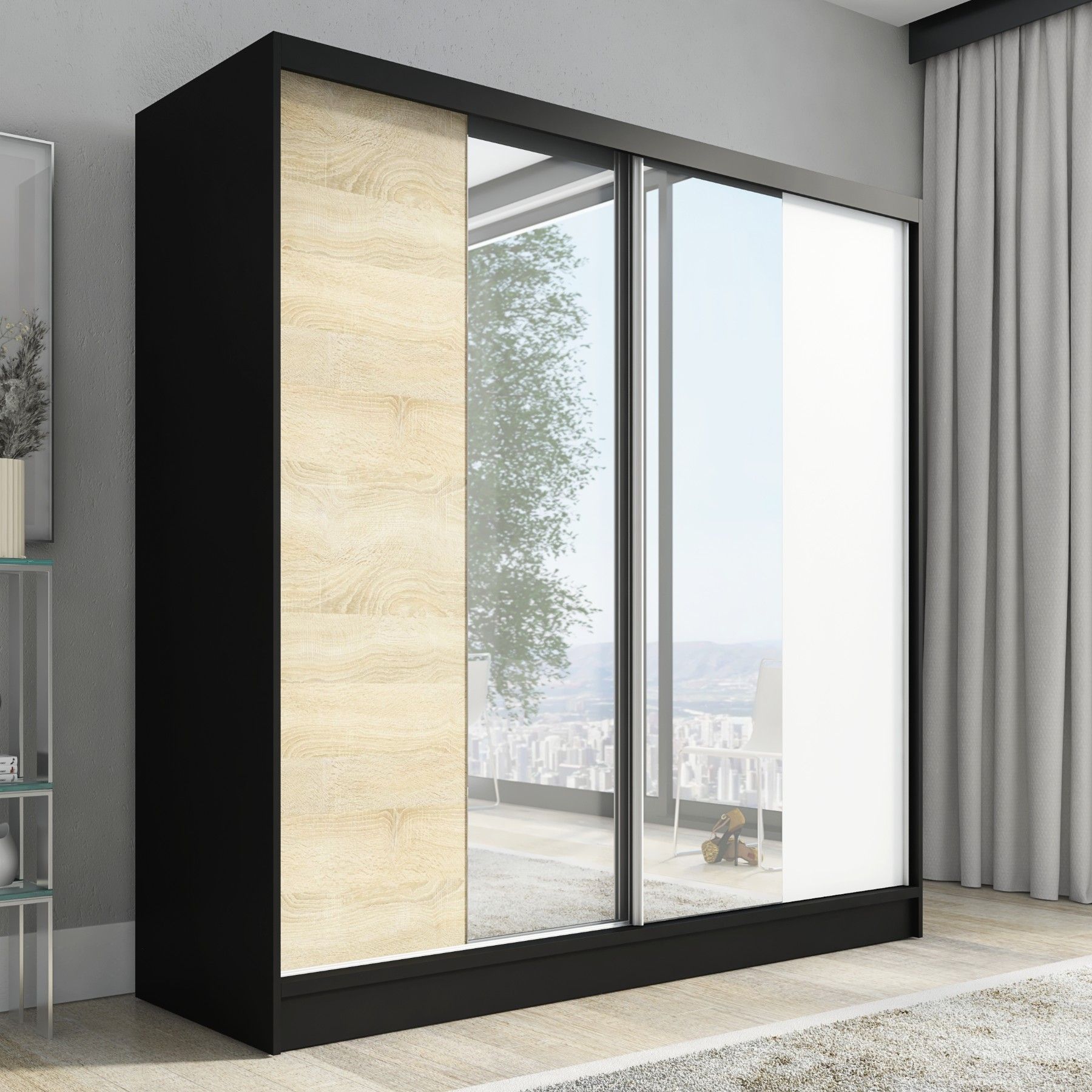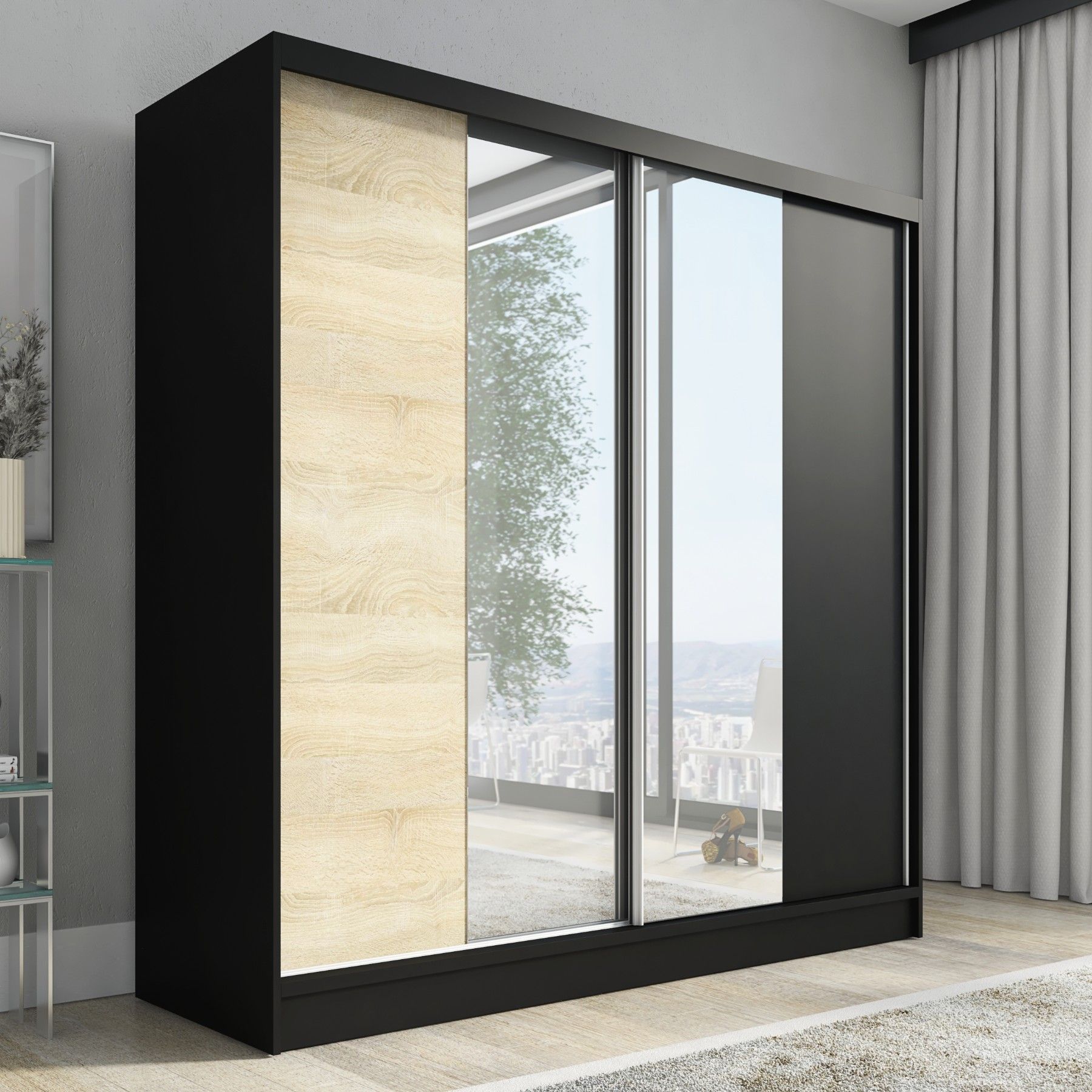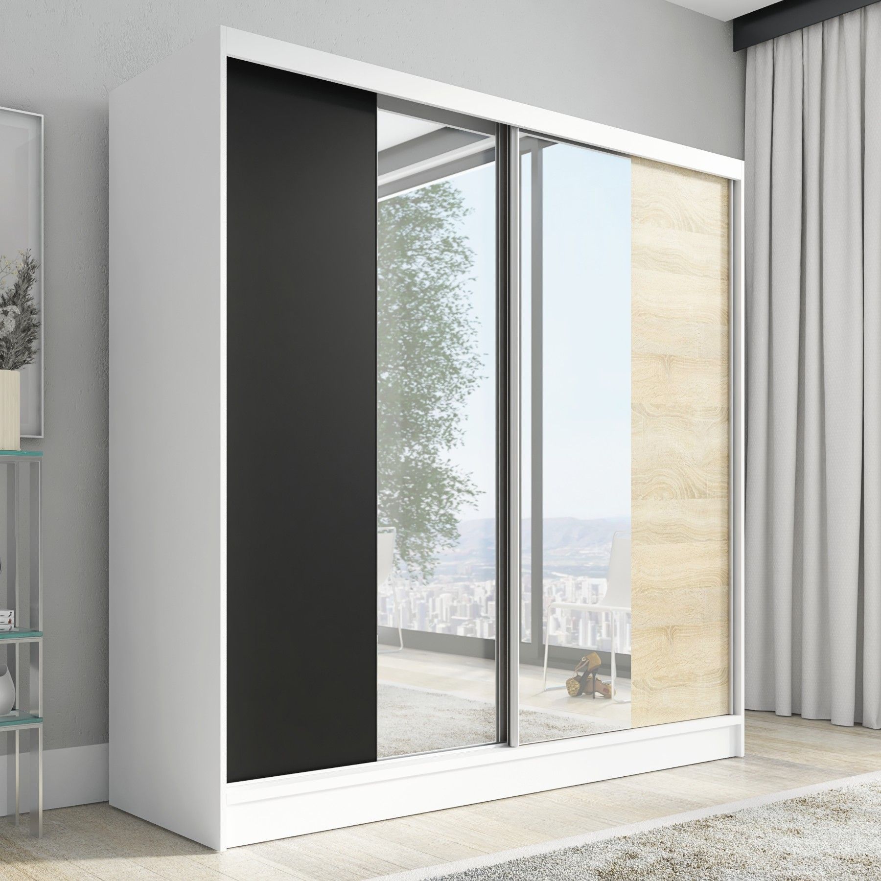 Schwebetürenschrank DUO, 2-türig Schrank 200 cm mit Spiegel