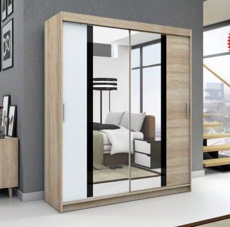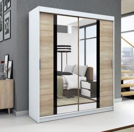 Schwebetürenschrank Kleiderschrank BRANI 160 cm Garderobe für Kleidung