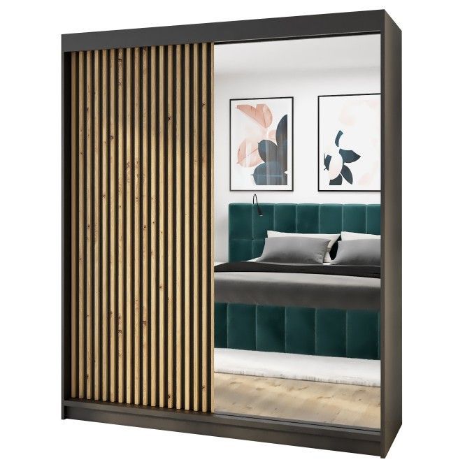 Schwebetürenschrank MOIN, 2-türig Schrank 180 cm mit Spiegel