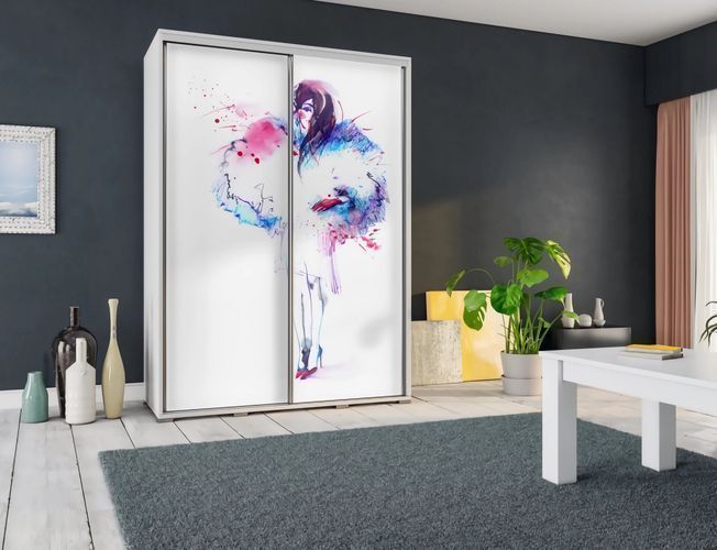Schwebetürenschrank Penelopa 155 Kleidereschrank mit Grafik SKUUL