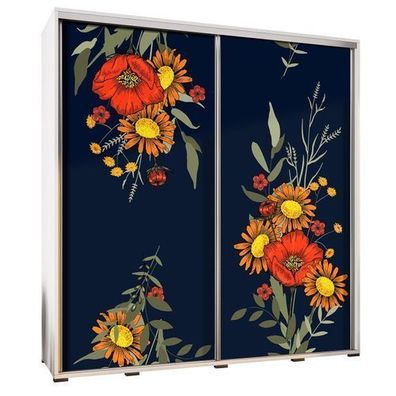 Schwebetürenschrank Penelopa 205 Kleidereschrank mit Grafiken Blumen