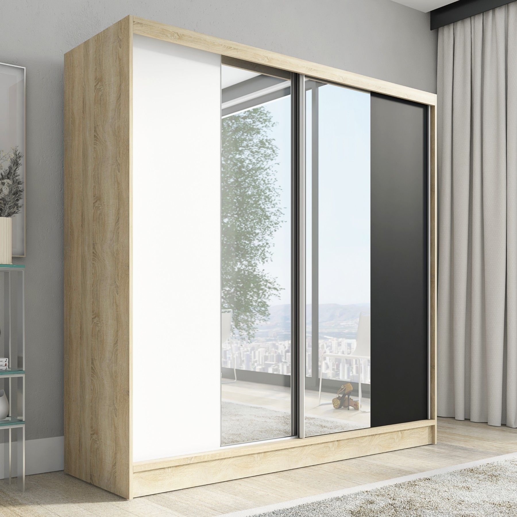 Schwebetürenschrank SOLO, 2-türig Schrank 200 cm mit Spiegel