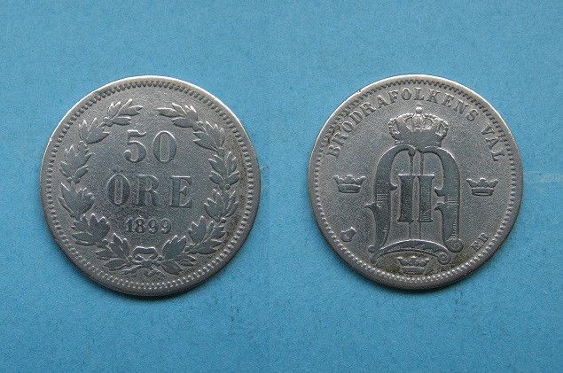 Schweden 50 Öre 1899 Oskar II Silber (W70)