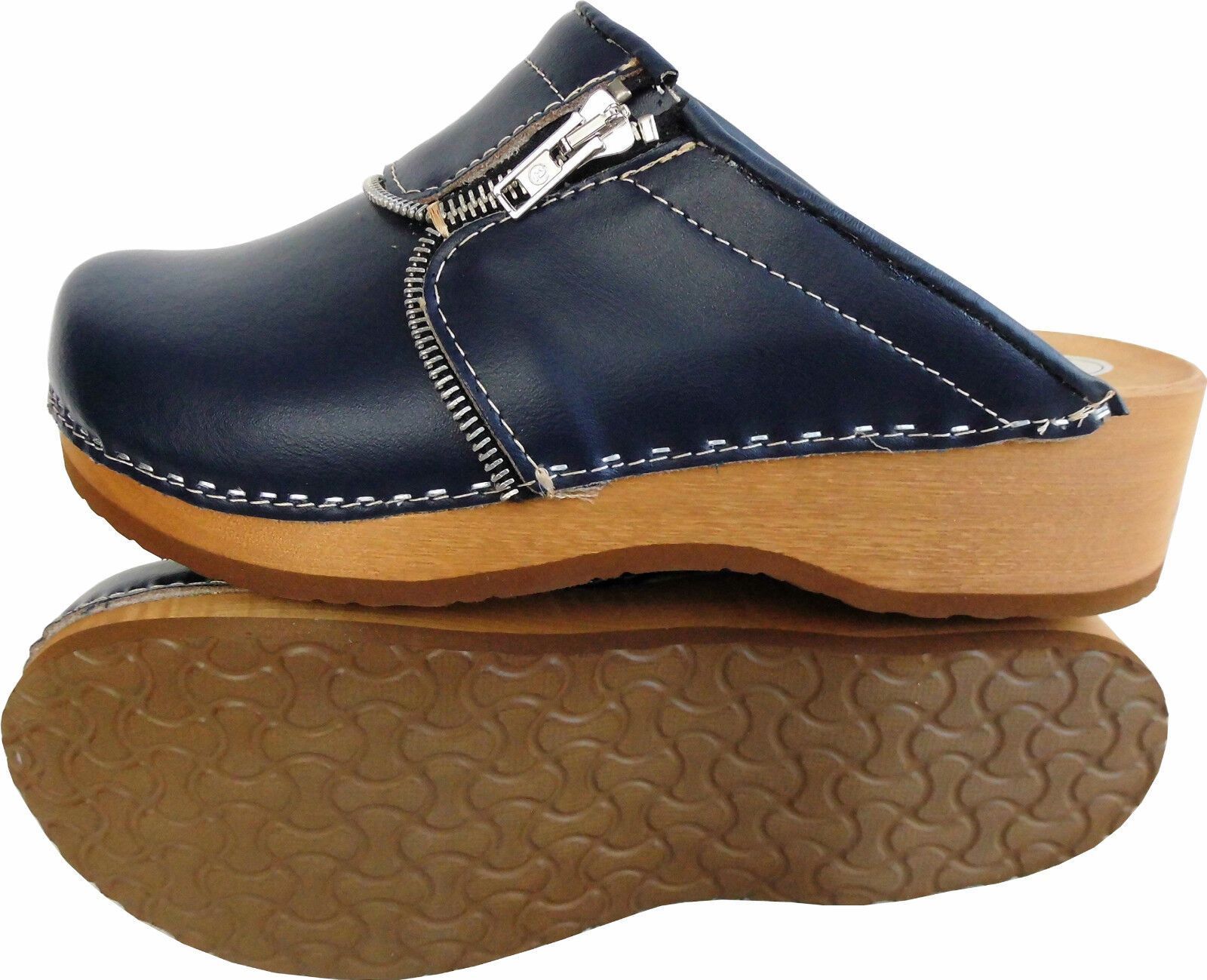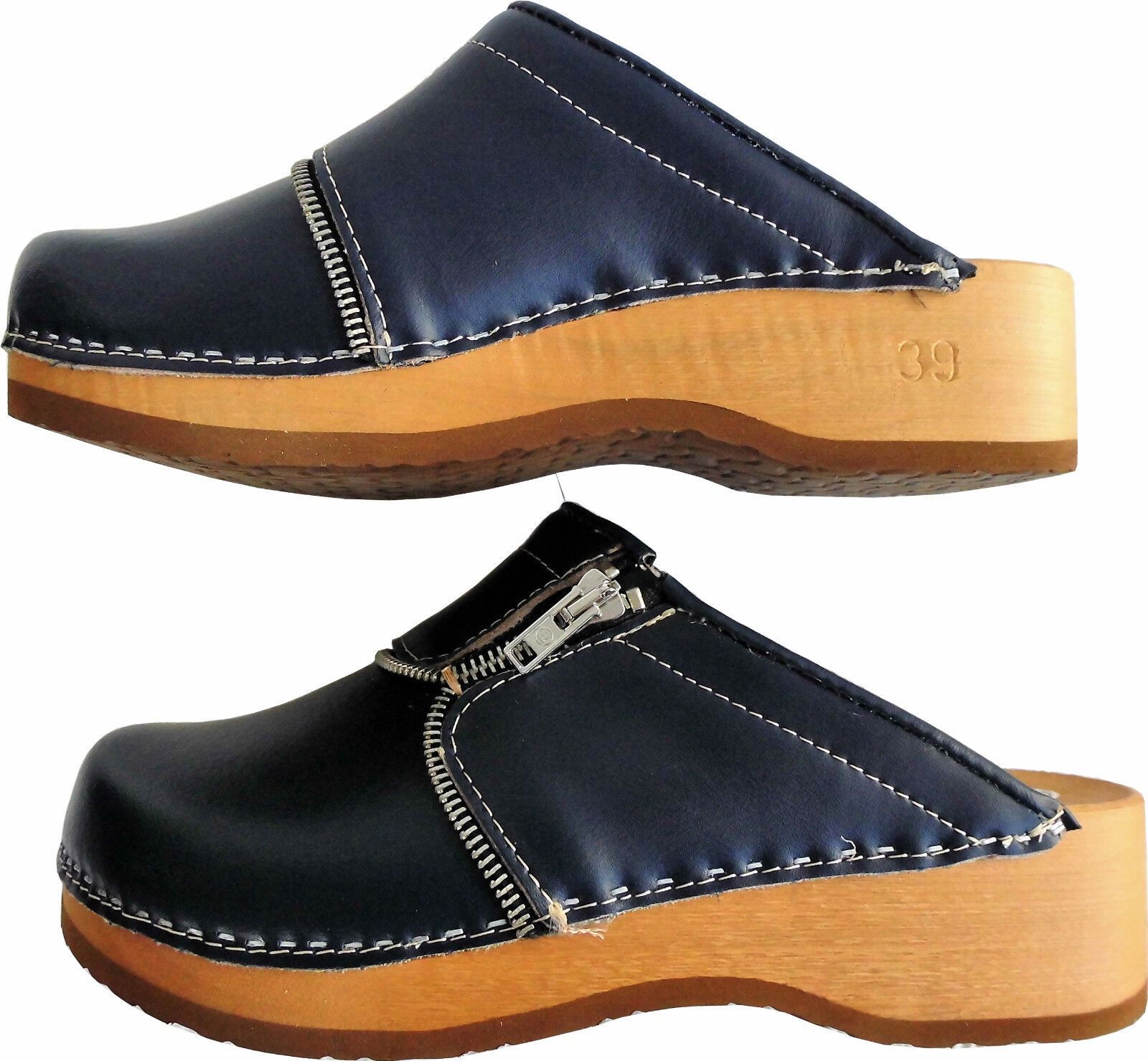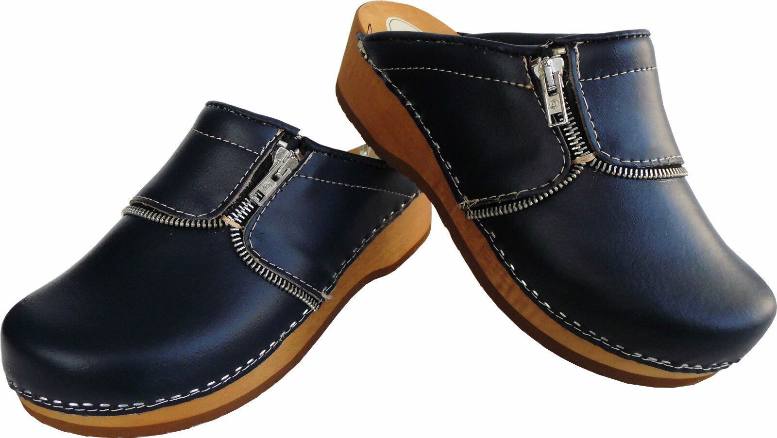 Schweden HOLZ CLOGS - Pantolette Gr.37 Dunkel BLAU Echt Leder Handarbeit -13