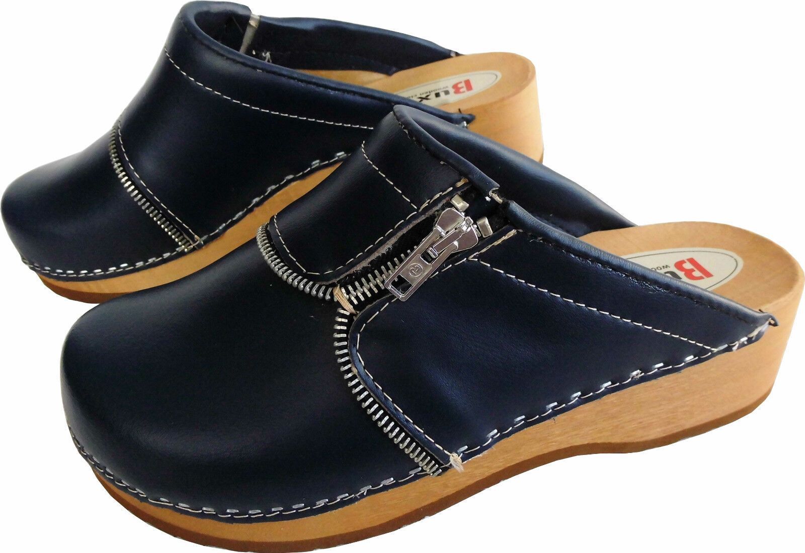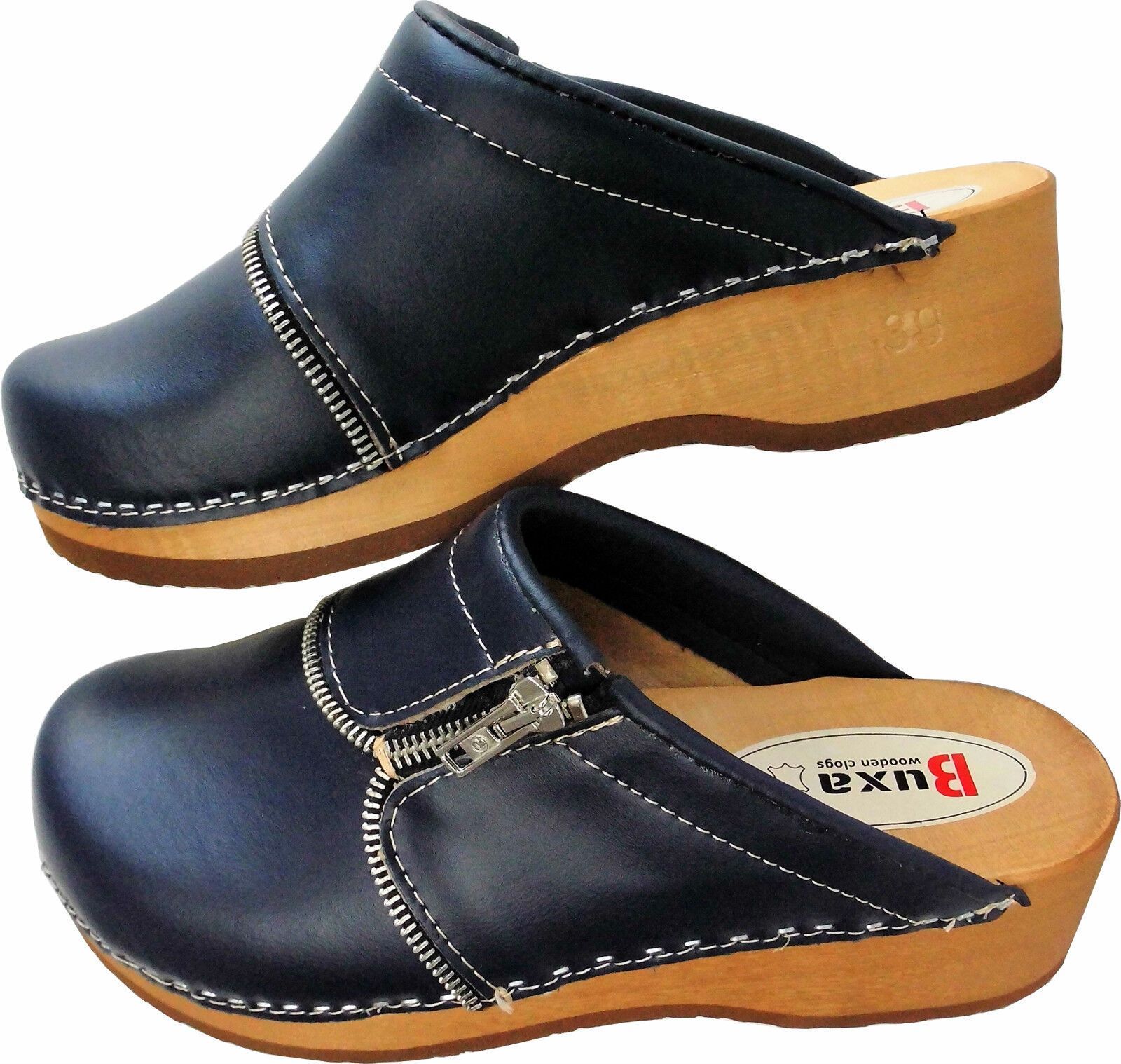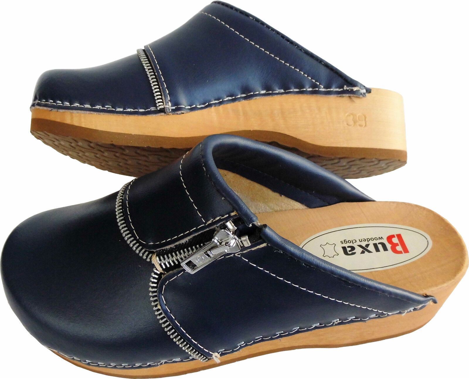 Schweden HOLZ CLOGS - Pantolette Gr.37 Dunkel BLAU Echt Leder Handarbeit -13