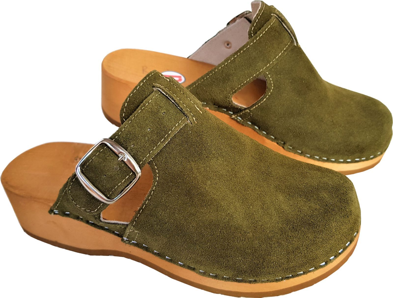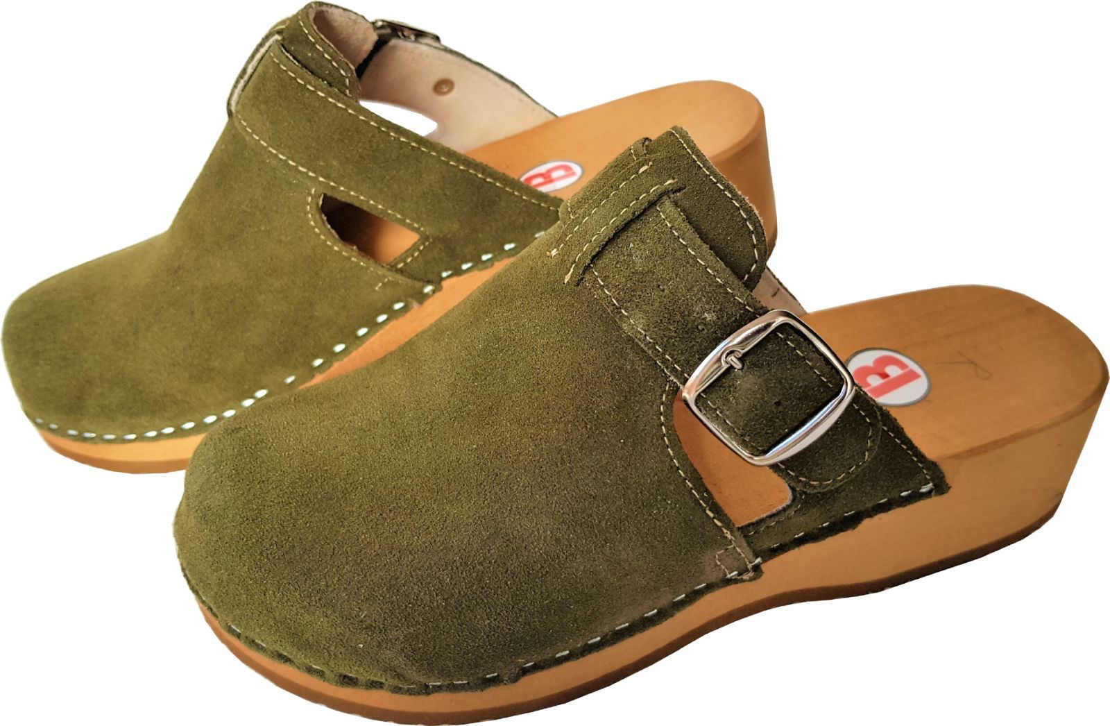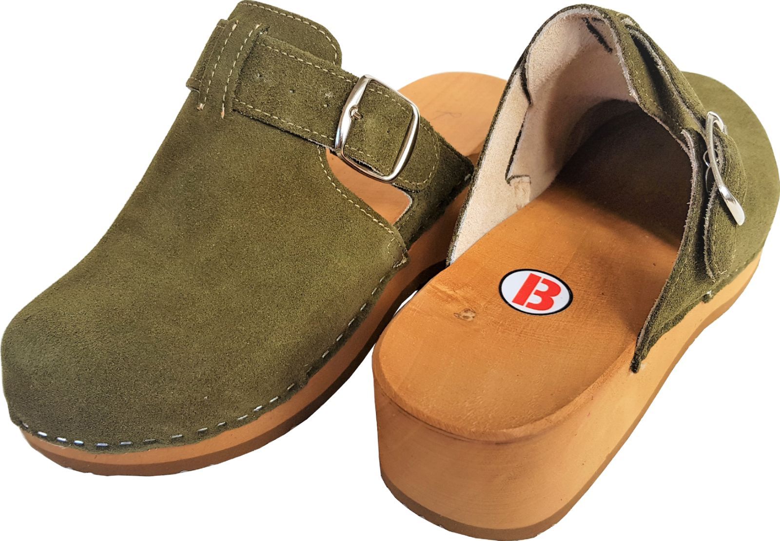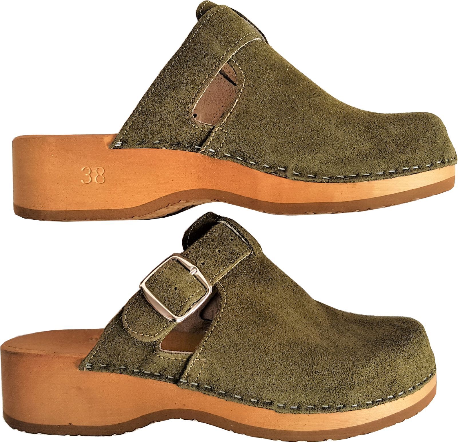 Schweden HOLZ CLOGS - Pantolette Gr.41 GRÜN-Olive - Nubuk Wild Leder ff