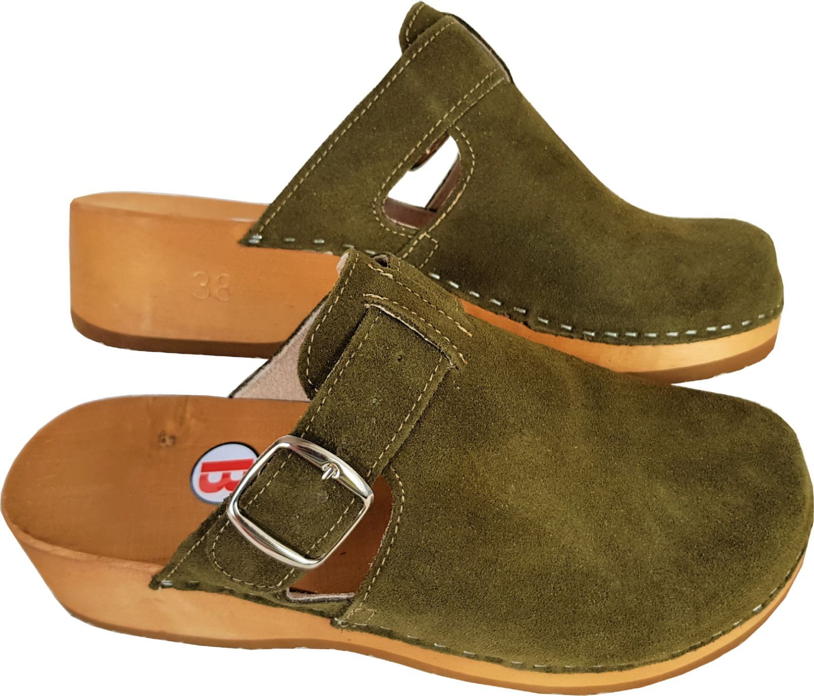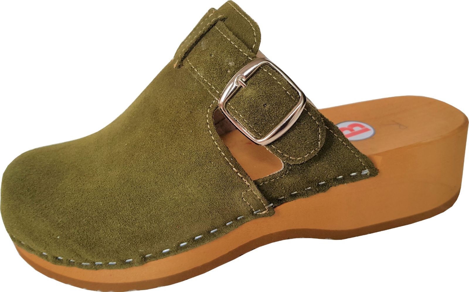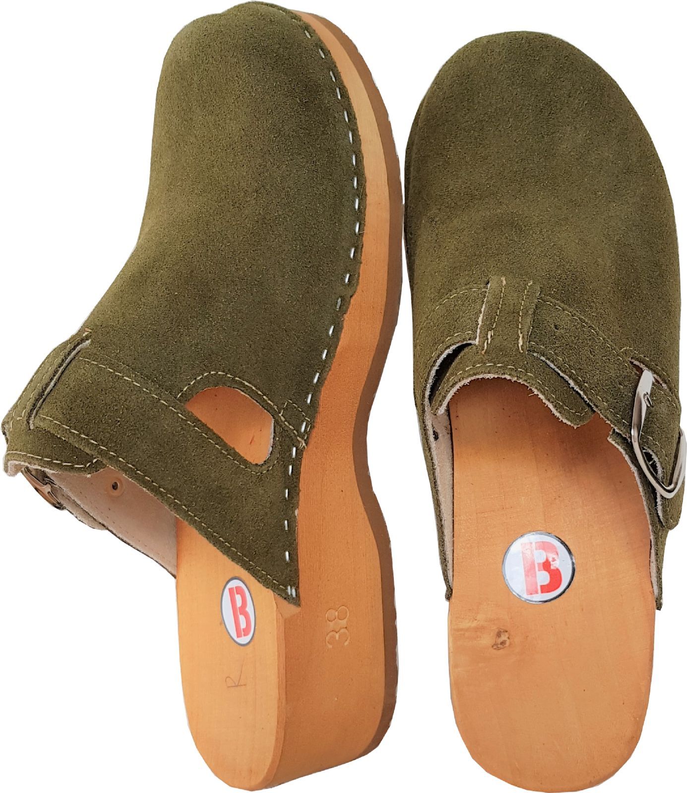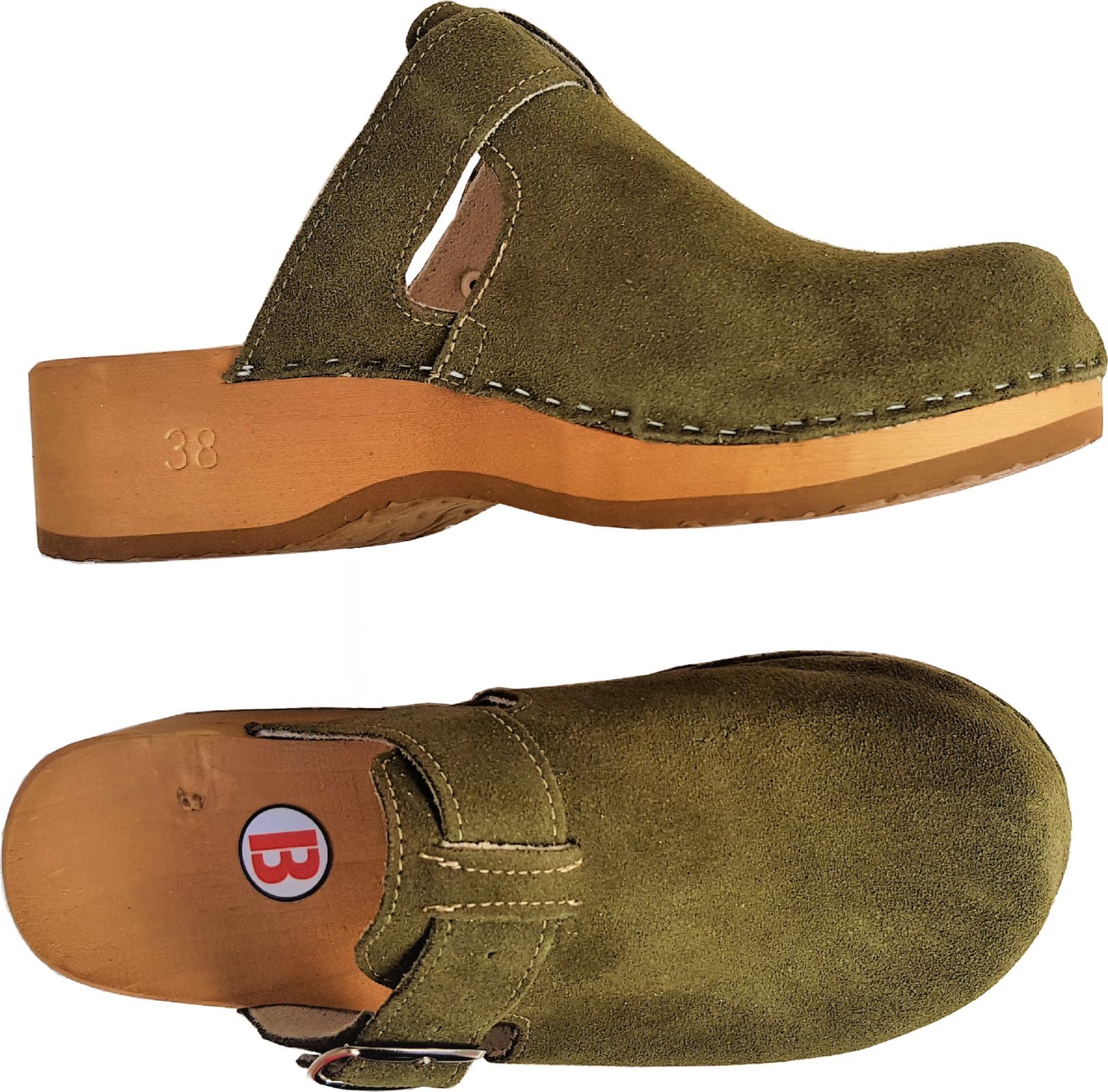 Schweden HOLZ CLOGS - Pantolette Gr.41 GRÜN-Olive - Nubuk Wild Leder ff