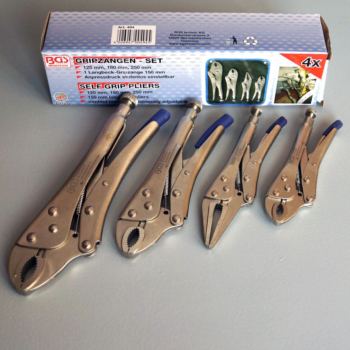 BGS Schweißerzange Gripzangen Satz Gripzange Langbeckzange Klemmzange Zange, 4 tlg