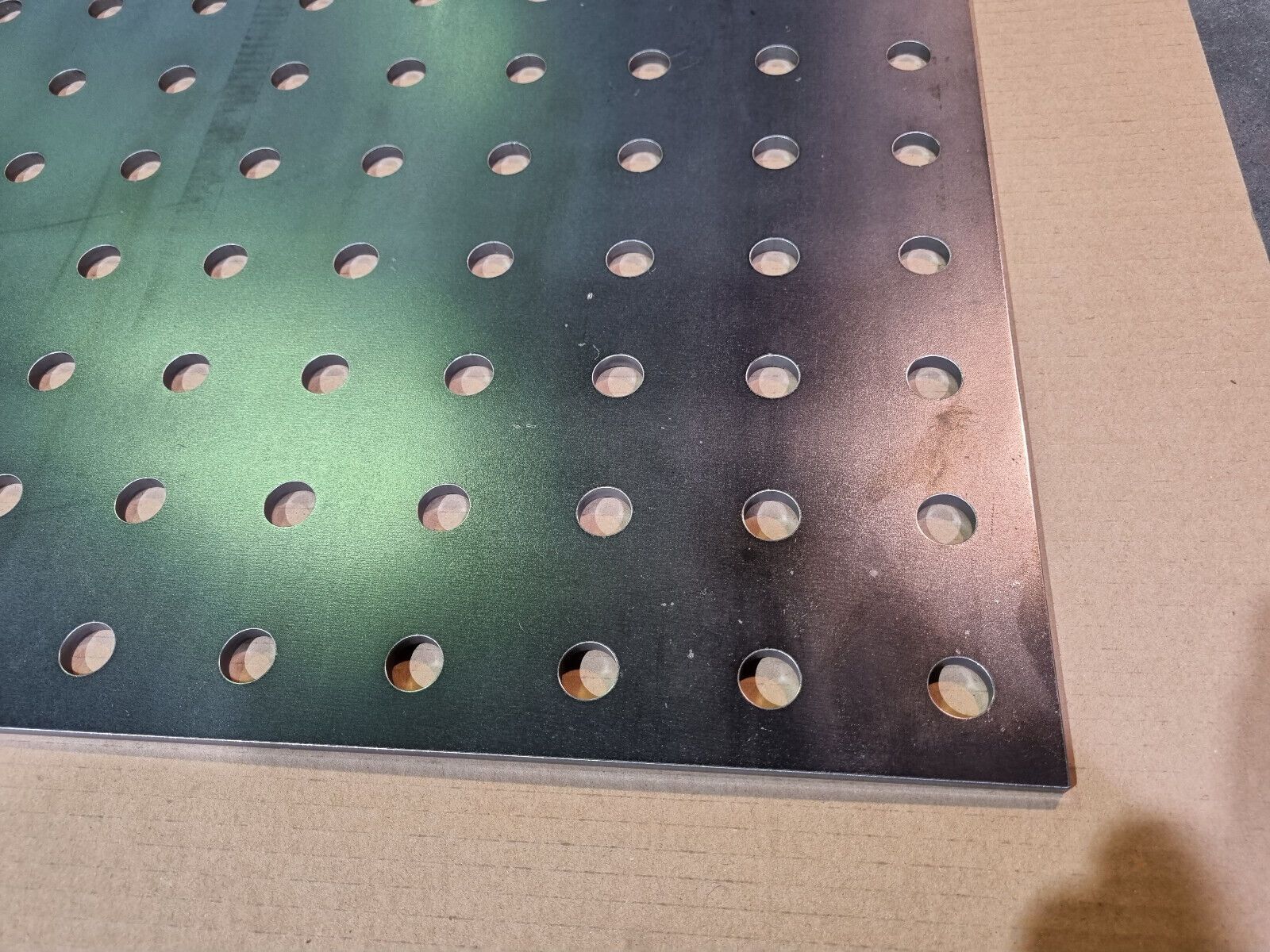 Lochplatte 600x1000x6mm mit Ø16 Bohrungen, Lochraster 50x50mm Material: Stahl S235 Hinweise: Lochplatten werden Roh geliefert, können geringfügige Kratzer und eine leichte, produktionsbedingte Bauchigkeit enthalten (bei Montage auf ein Gestell leicht herauszudrücken). Bitte beachten Sie, dass