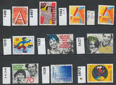 Schweiz Mi. Nr. 1490 + 1497 + 1563xA + 1563yA + 1610 + 1625 + 1627+ 1628+ 1638 + o <