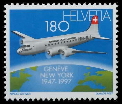 SCHWEIZ 1997 Nr 1609 postfrisch 180 C Wert aus der Ausgabe Flugpost Geneve New York 2.12€ incl. MwSt: Differenzbesteuert zzgl. Versandkosten Bestell-Nr.: 657C1E Katalog-Nr: MICHEL (1609) Katalogpreis: 2,8 EUR Qualität: Normal Erhaltung: Postfrisch ** Einheit: Einzelmarke Einzelstück Bogenlage: