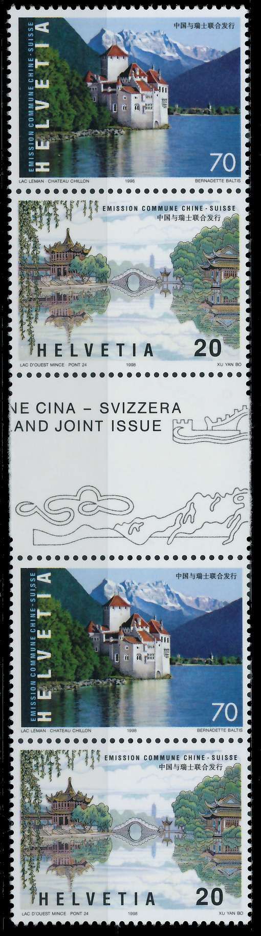 SCHWEIZ 1998 Nr 1667 68-ZS4 postfrisch ZW-STEG PAAR 70 C + 20 C Wert aus der Ausgabe Schweizerisch-Chinesische Freundschaft mit Zwischensteg (MichelNr.: 1667, 1668) 4.33€ incl. MwSt: Differenzbesteuert zzgl. Versandkosten Bestell-Nr.: 691502 Katalog-Nr: MICHEL (1667 68-ZS4) Katalogpreis: - EUR