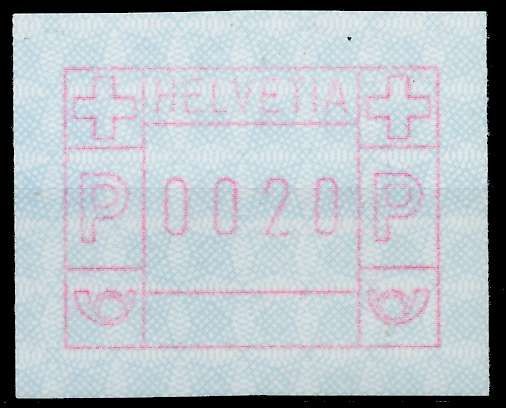 SCHWEIZ AUTOMATENMARKEN A3 Nr 3yavI 0020 postfrisch Automatenmarke (ATM) 3. Ausgabe, Papier phosphoreszierend mit violetten Fasern, Unterdruck Type I 1.90€ incl. MwSt: Differenzbesteuert zzgl. Versandkosten Bestell-Nr.: 67966E Katalog-Nr: MICHEL (3 yavI 0020) Katalogpreis: 5 EUR Qualität: Norma