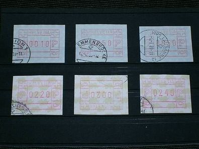 Schweiz, verschiedene Automatenmarken gestempelt