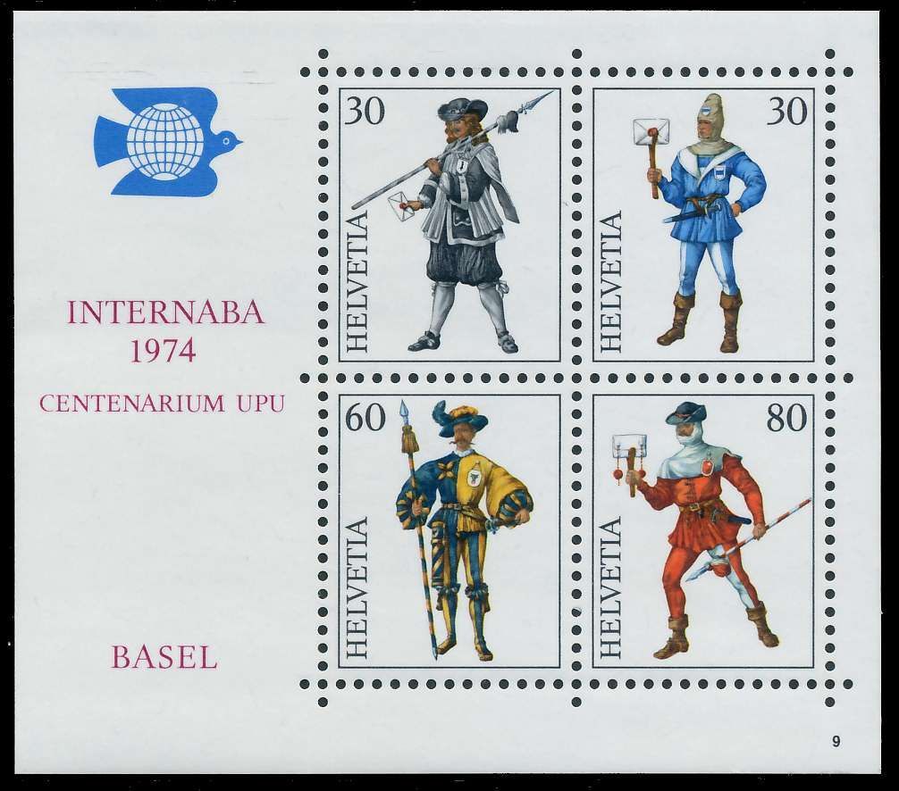 SCHWEIZ BLOCK KLEINBOGEN 1970-1979 Block 22-09 Block-Ausgabe INTERNABA 1974, mit Formnummer 9 2.17€ incl. MwSt: Differenzbesteuert zzgl. Versandkosten Bestell-Nr.: 66EFEA Katalog-Nr: MICHEL (Block 22-09) Katalogpreis: 5,5 EUR Qualität: Normal Erhaltung: Postfrisch ** Einheit: Einzelmarke Einzel