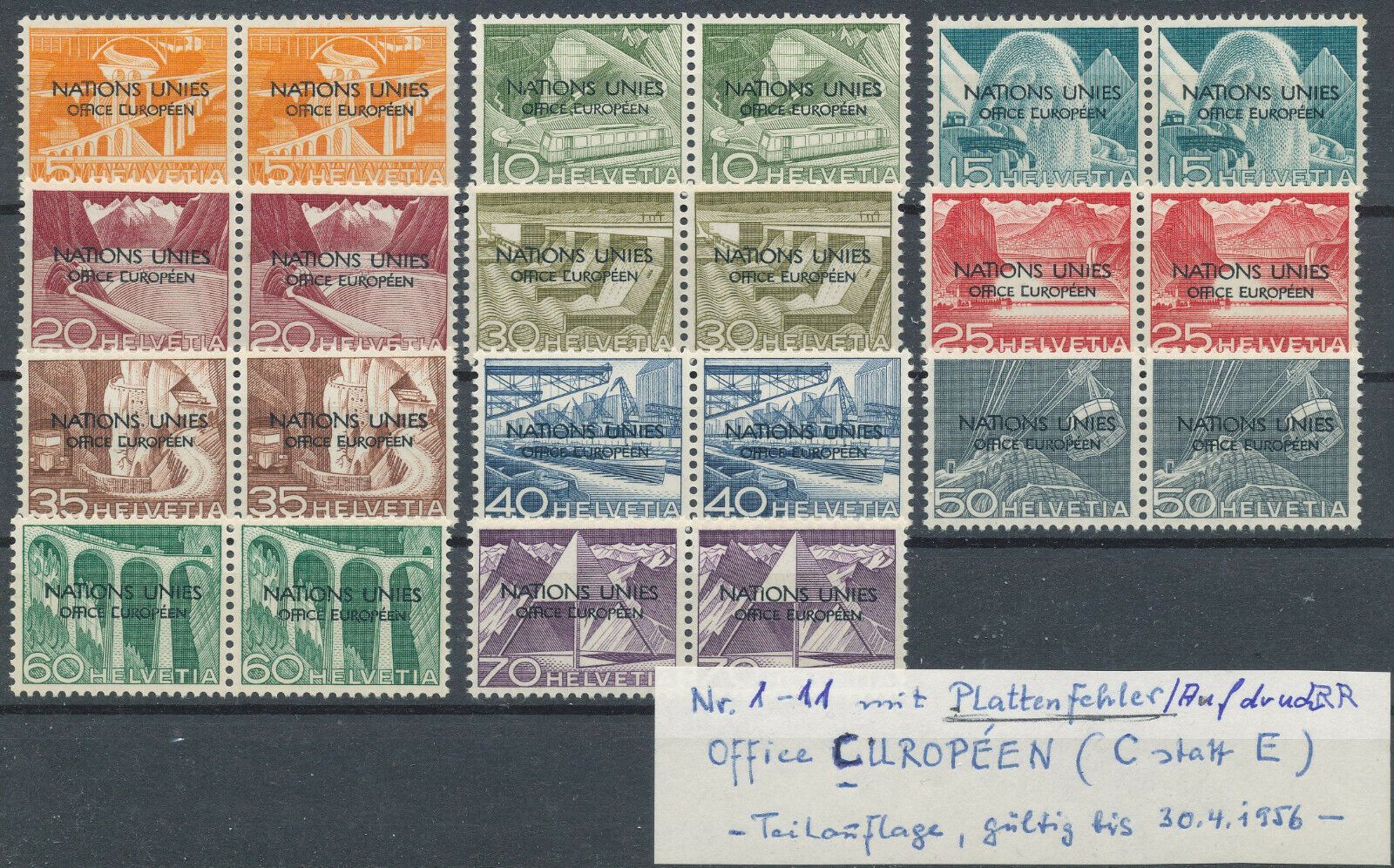 Schweiz (ONU/ UNO) Nr. 1/11, Paare mit Fehler, einwandfrei postfrisch, siehe Bild