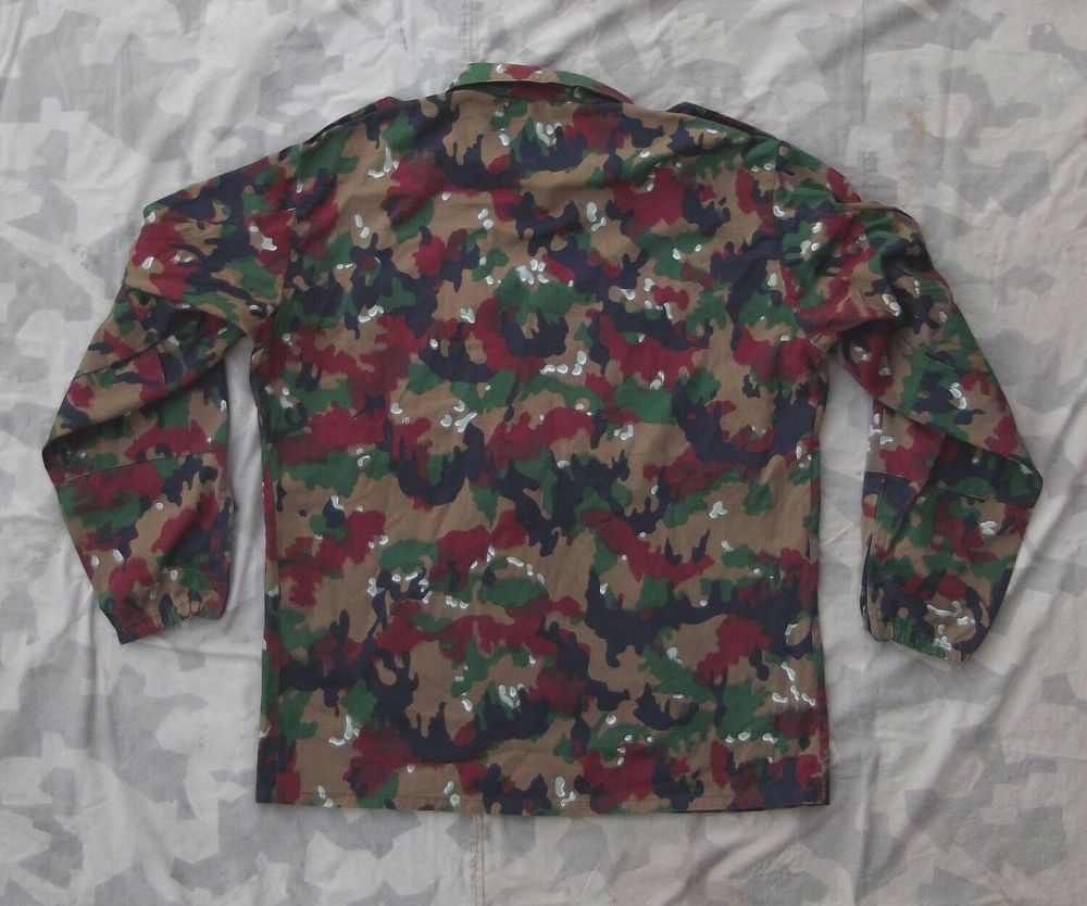 Schweizer Feldbluse M83 Original Feldjacke der schweizer Streitkräfte. Gebrauchte Jacke, Zustand: gut bis sehr gut. Tarnmuster: alpentarn, Version: M83 Material: 50% Baumwolle 50% Polyester. Produktmerkmale: Frontreißverschluss 2 Brusttaschen mit Patten & Druckknopfverschluss 1 Oberarmtasche mit