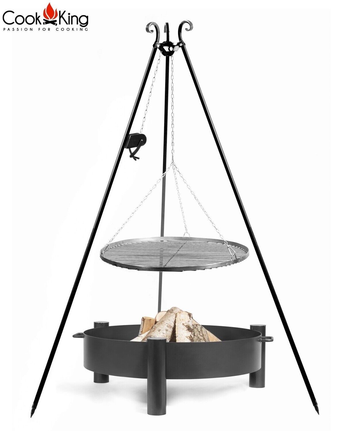 • Schwenkgrill H 200 cm mit Grillrost Ø 80 cm aus Rohstahl Dreibein Grill Tripod