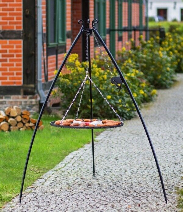 • Dreibein Schwenkgrill Gartengrill Holzkohlegrill m. Kurbel Rost 80 Edelstahl