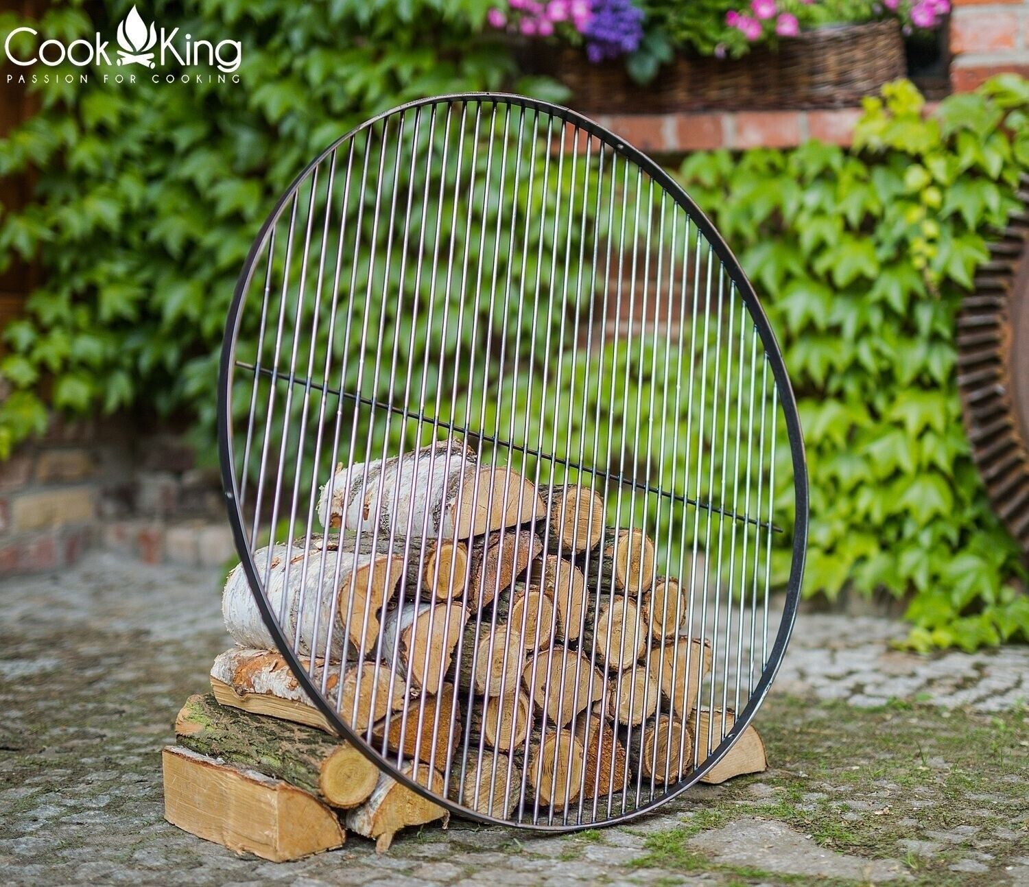 Schwenkgrill mit Kurbel H 200cm mit Grillrost Ø 60cm aus Rohstahl Dreibein Grill