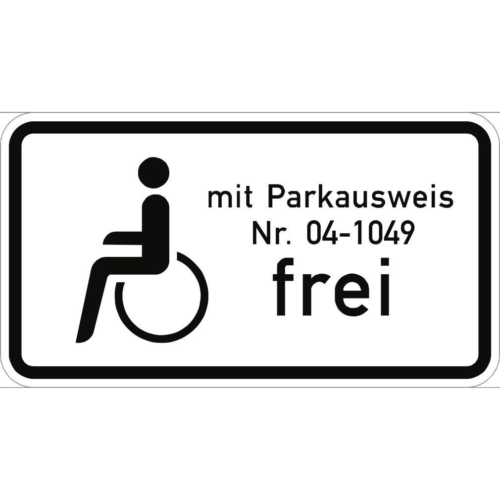 Schwerbehinderte mit Parkausweis Nr. ... frei, Kombischild, StVO
