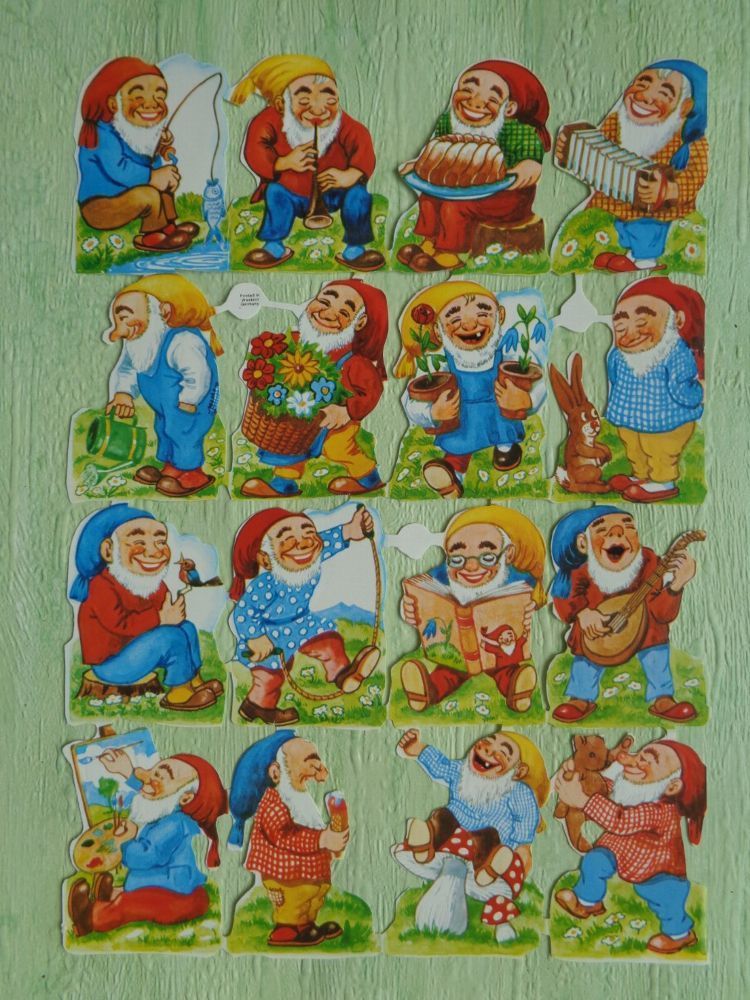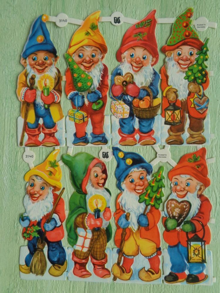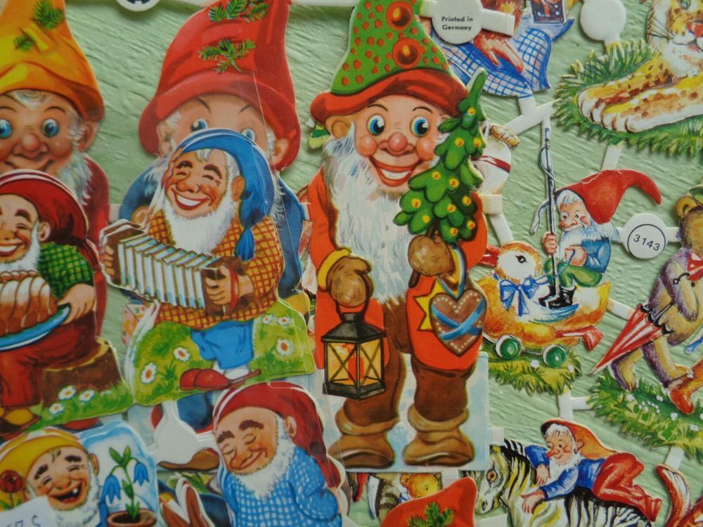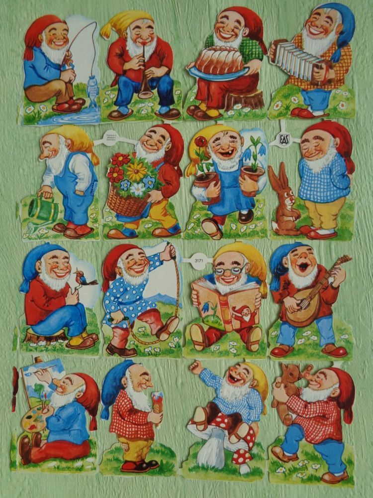 Schwerdtfeger EAS 3143 3140 3171 Zwerge Wichtel alte Glanzbilderbogen Sheets Scraps