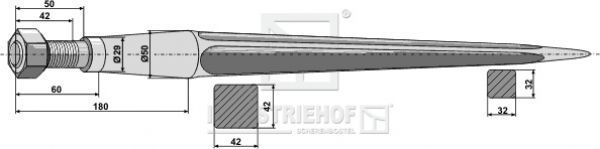 Schwerlastzinken Frontladerzinken L 820 mm Gew. 28x1.5 Profil-Vierkant Technische Datem: Frontlader Zinken 820 mm Betsll.-Nr.: 18849 Gewicht: 7.700 kg Form: gerade Profil: Vierkant: 42 42 mm Gewinde: M28 x 1.5 mm Länge: 820 mm Gewindelänge: 42 mm Schaftlänge gesamt 180 mm Komplette Bemaßung siehe Bi