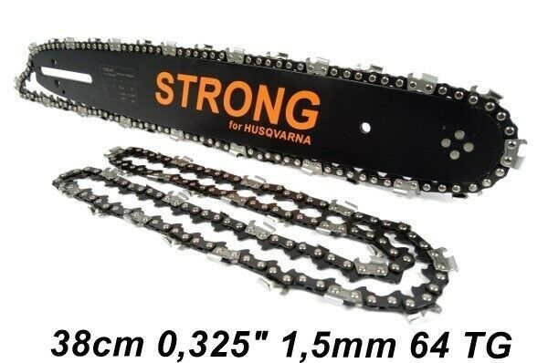 Schwert und 2 Ketten 38cm 0,325" 1,5mm 64 TG STRONG - passend für Husqvarna