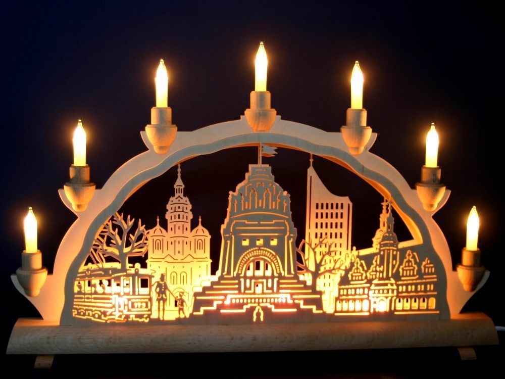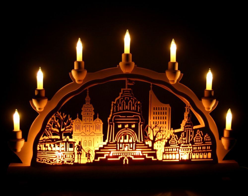 Schwibbogen 50cm Leipzig Altstadt Völkerschlachtdenkmal Erzgebirge Lichterbogen