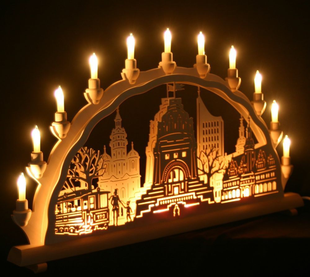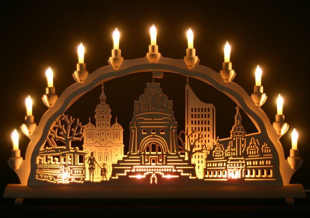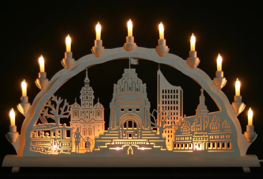 Schwibbogen 68cm Leipzig Altstadt Völkerschlachtdenkmal Erzgebirge Lichterbogen