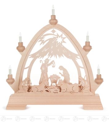 • Lichterbogen Schwibbogen Christi Geburt mit Krippe natur (LxBxH):47x10x20cm