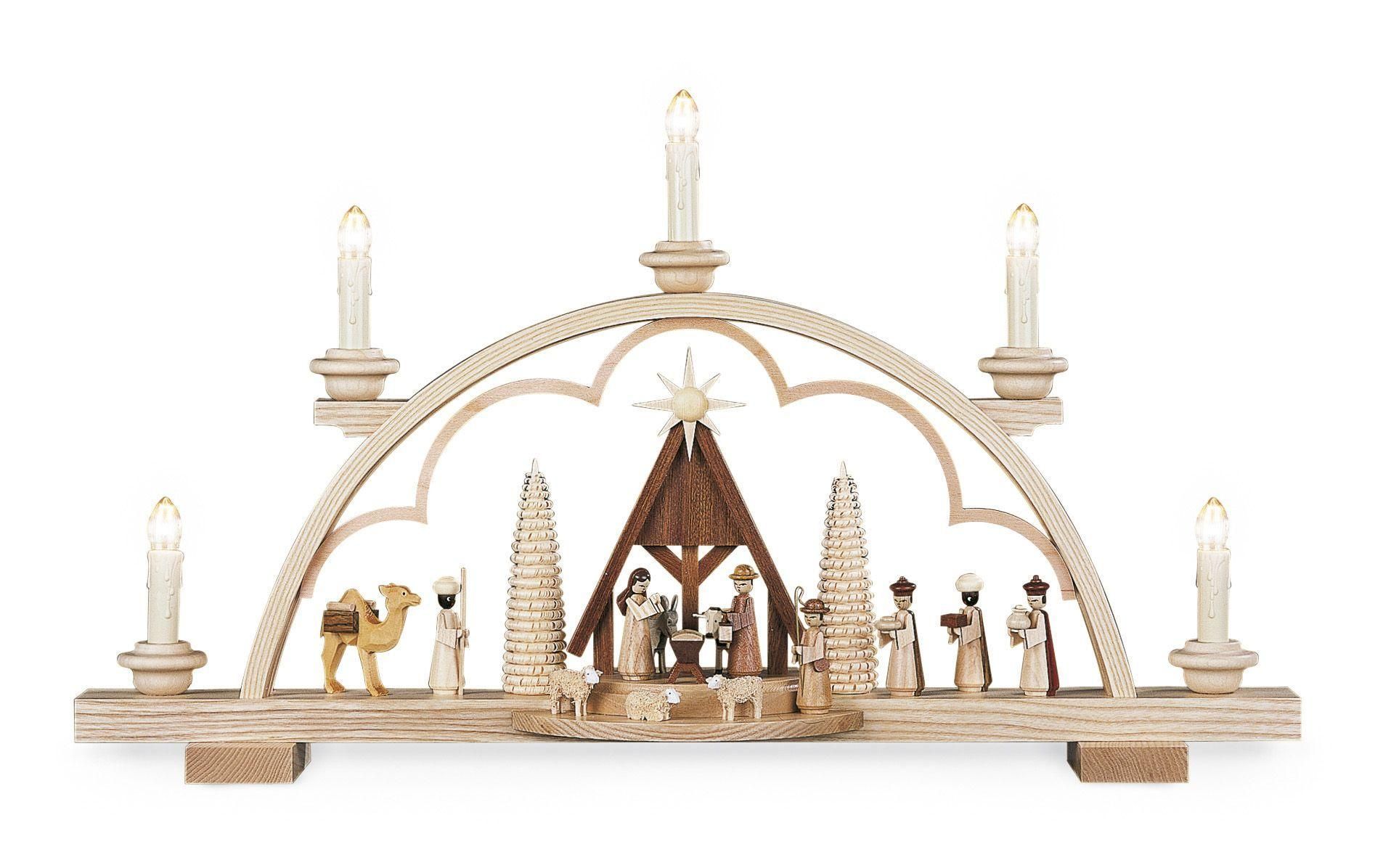 Schwibbogen Christi Geburt + Krippe natur elek. bel. (LxBxH):57x11x32cm NEU