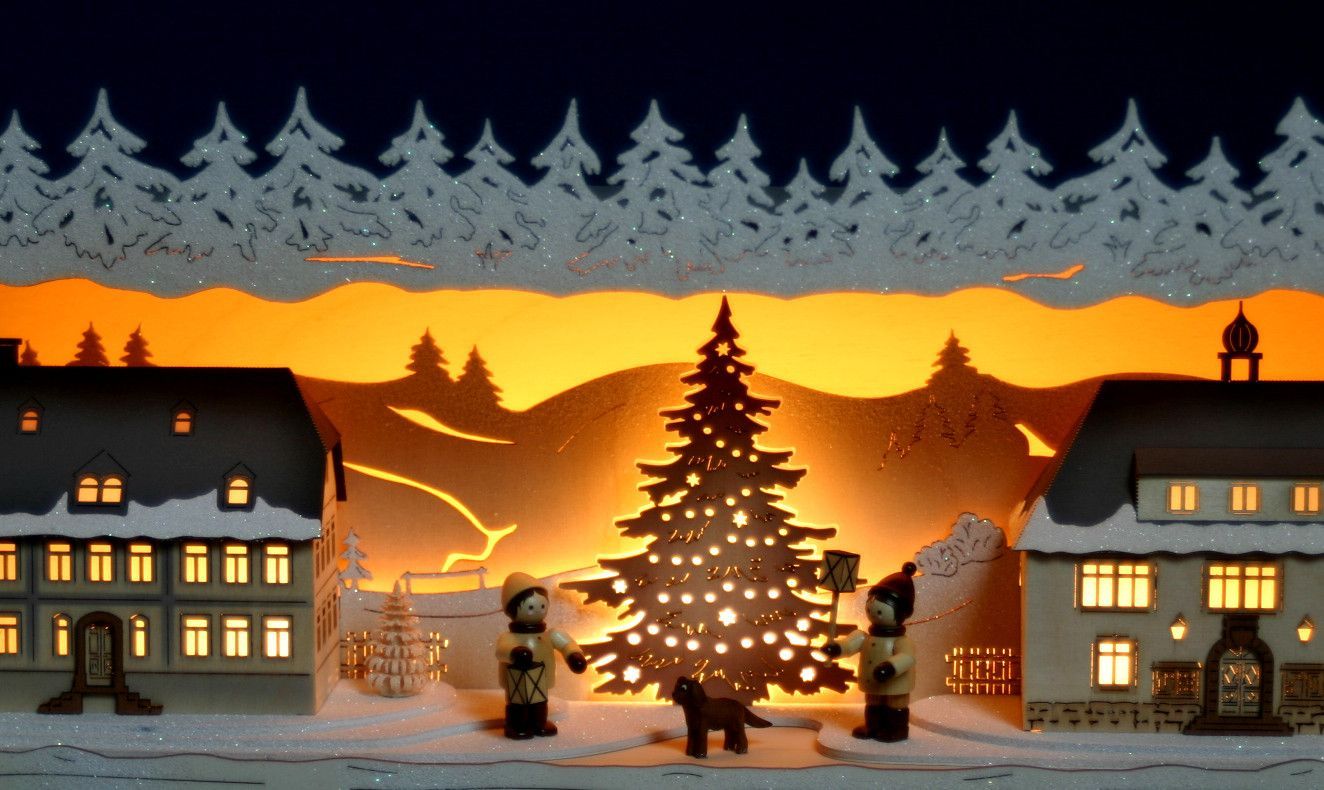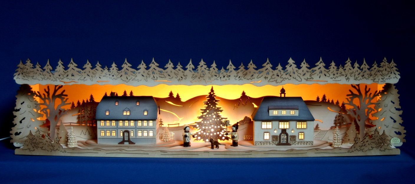 Schwibbogen-Erhöhung Seiffener Dorf Rathaus 79cm Unterbank Sockel Erzgebirge