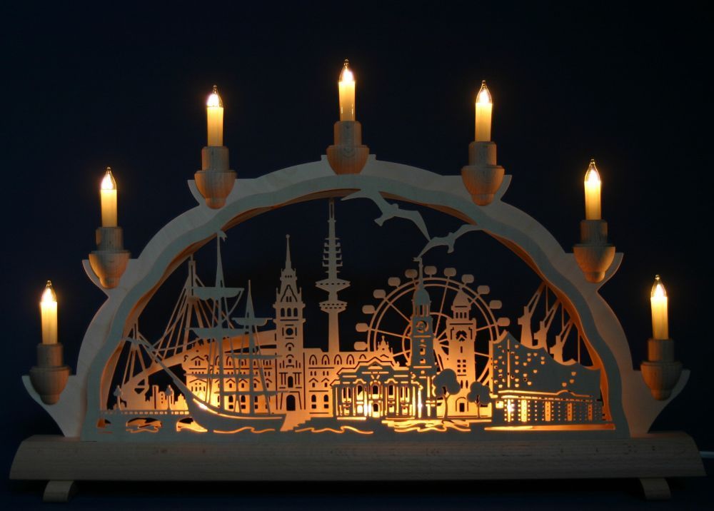 Schwibbogen Hamburg 50cm Stadtansicht Dom Landungsbrücken Lichterbogen Erzgebirge