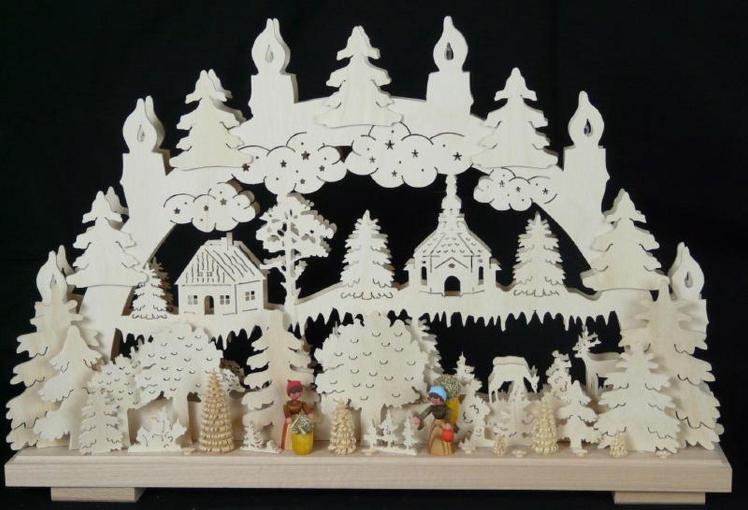 Schwibbogen mit Buschgrasholerin und Beleuchtung BxHxT 50x33x7cm NEU