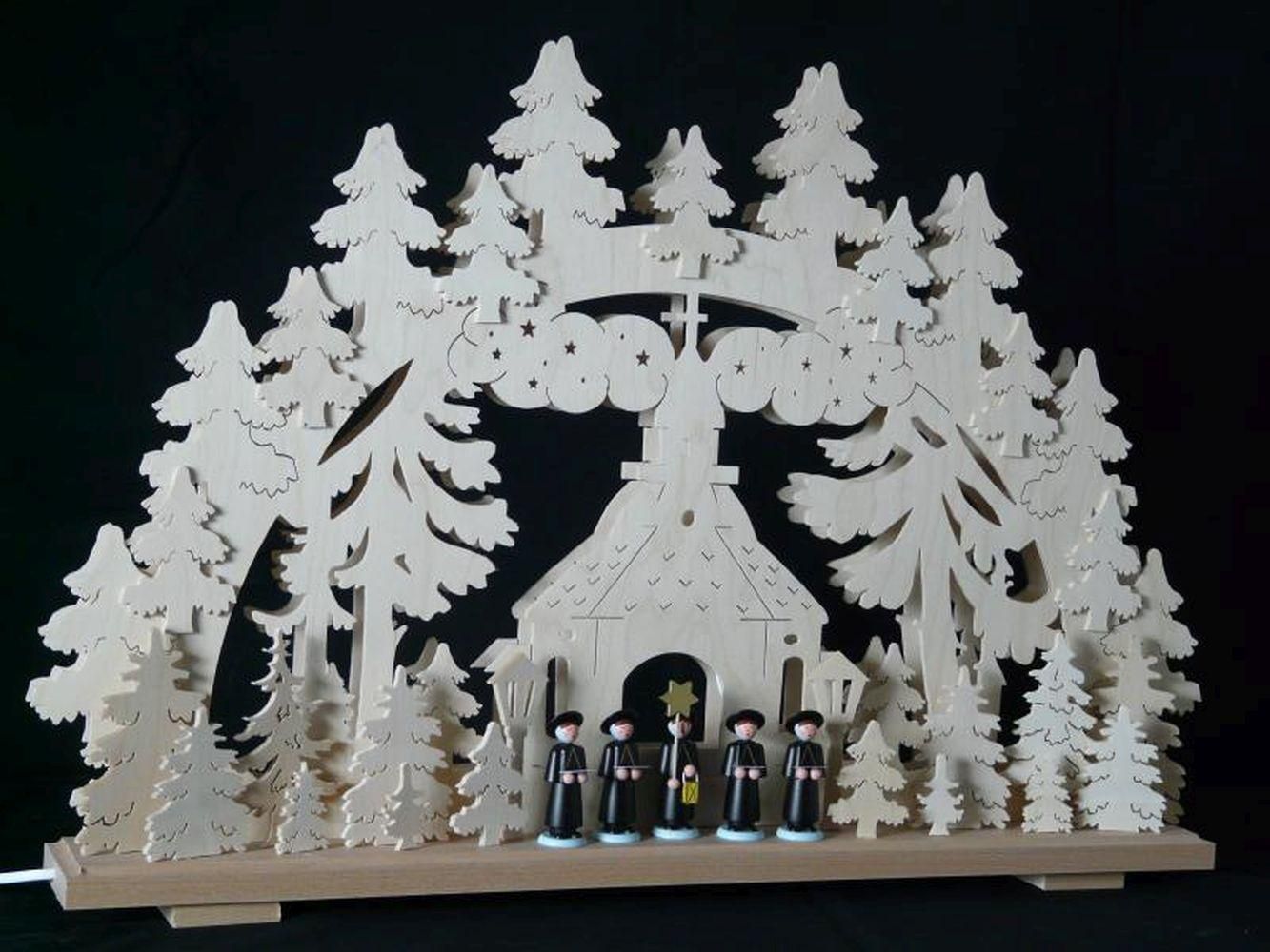 Schwibbogen mit der Seiffener Kirche Kurrende und Beleuchtung BxHxT 70x43x7cm