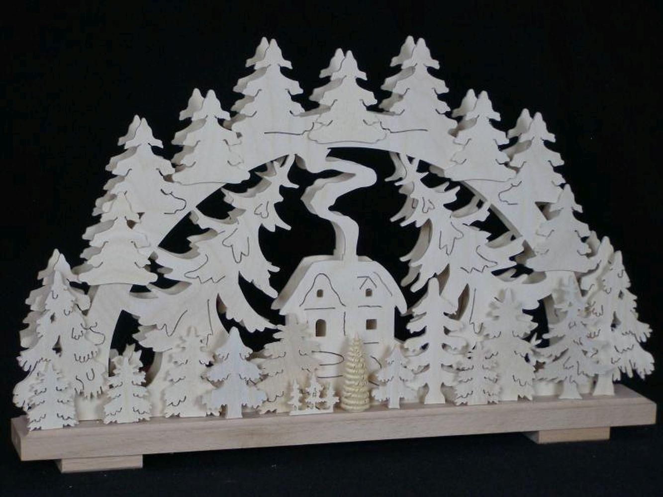 Schwibbogen mit Haus im Wald und Beleuchtung BxHxT 50x31x7cm NEU Lichterbogen Fen