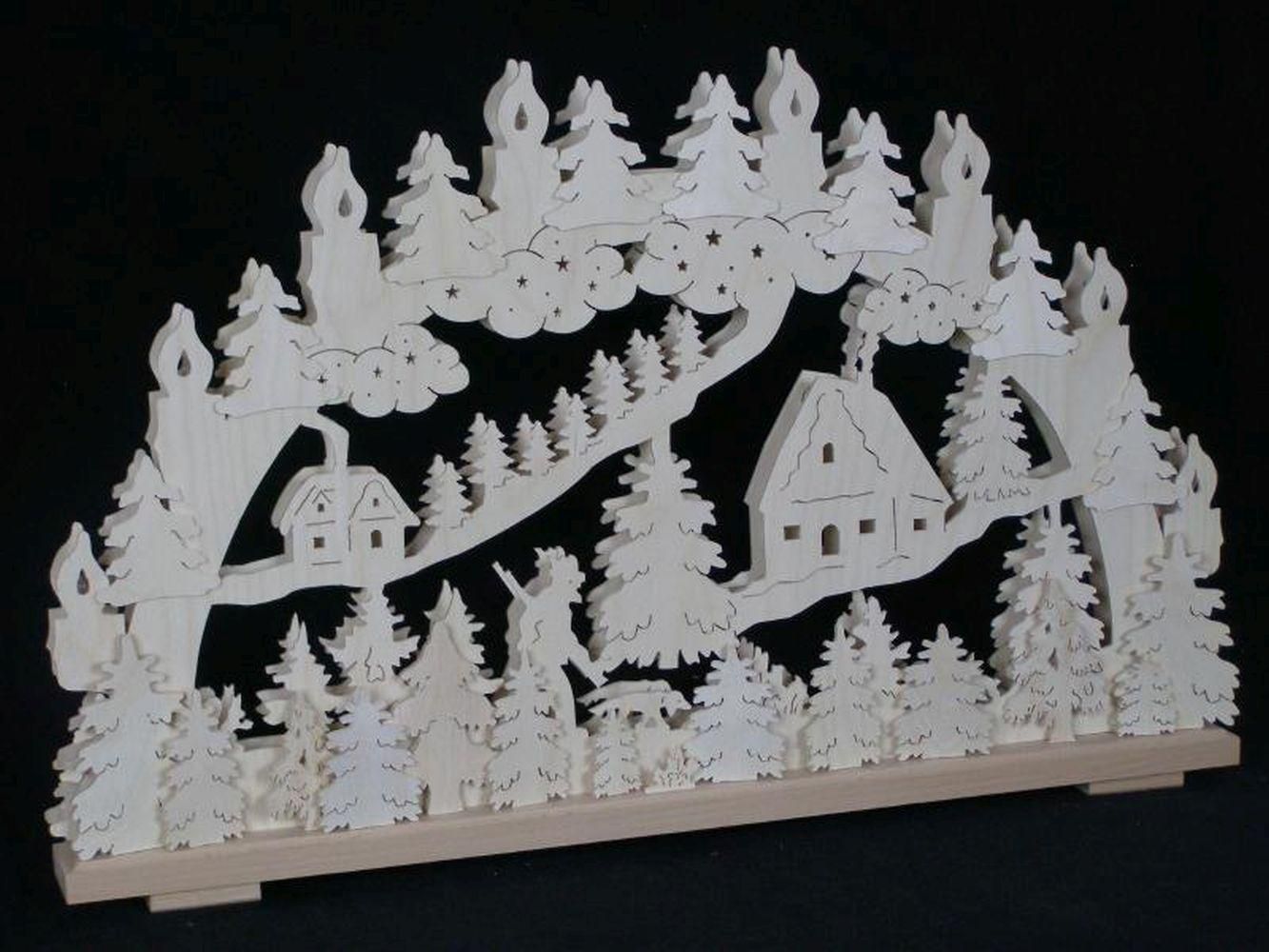 Schwibbogen mit Jäger und Haus im Wald und Beleuchtung BxHxT 70x44x7cm NEU