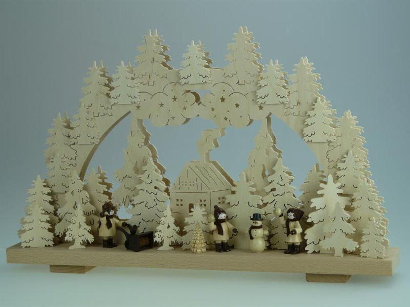 Schwibbogen mit Kinder mit Schneefräse und Beleuchtung BxHxT 50x31x7cm NEU