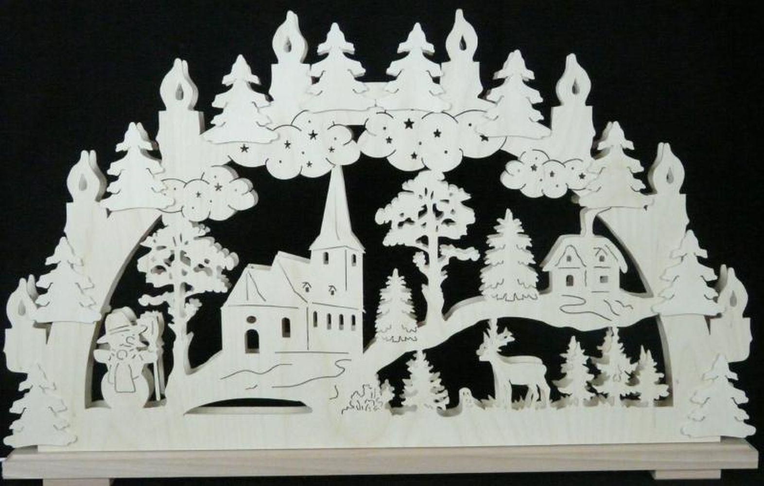 Schwibbogen mit Kirche Haus Waldtieren und Beleuchtung BxHxT 70x43x7cm NEU Lichte