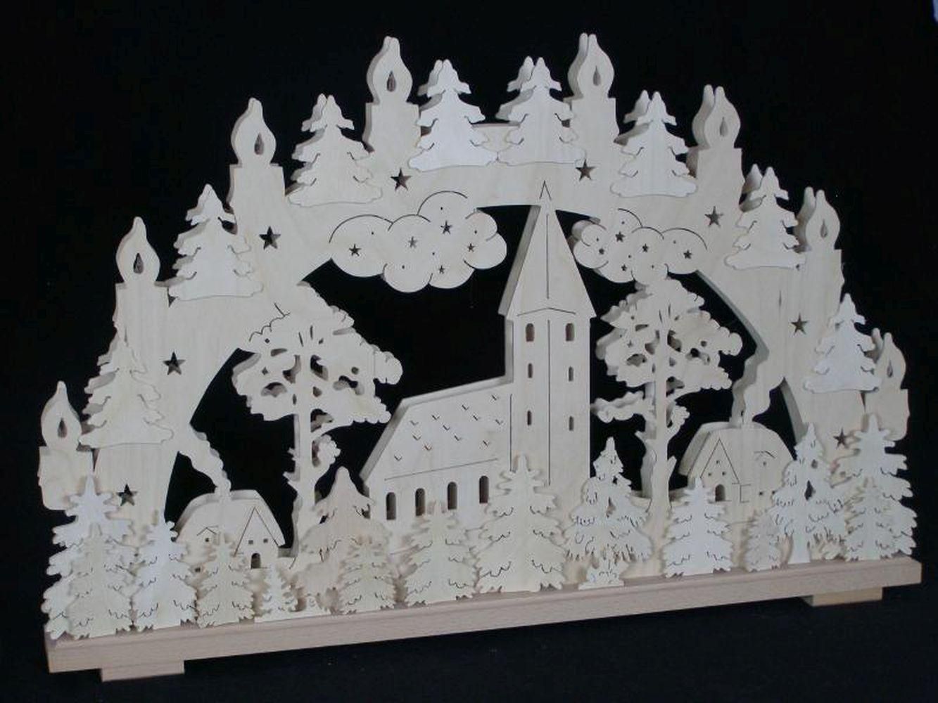 Schwibbogen mit Kirche und Beleuchtung BxHxT 70x45x7cm NEU Lichterbogen Fensterbo