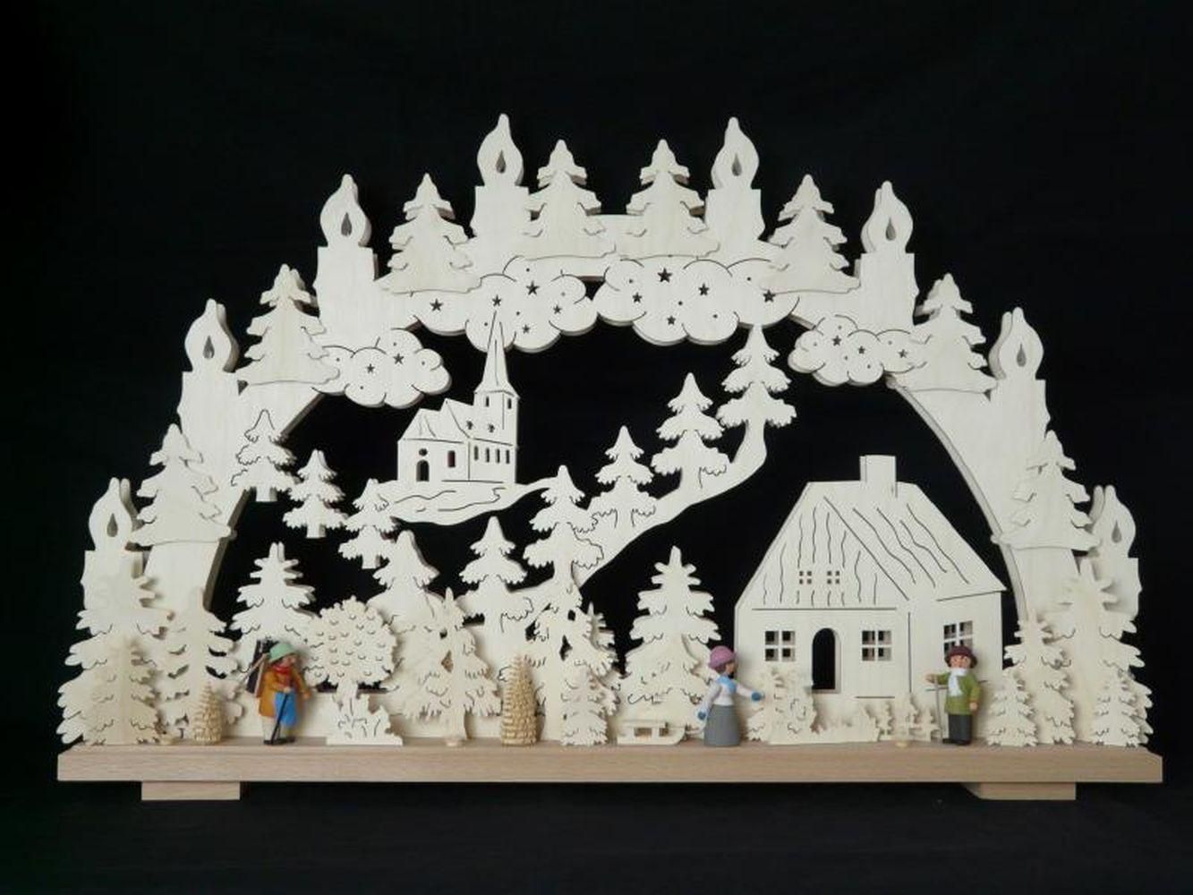 Schwibbogen mit kleinen Figuren und Beleuchtung BxHxT 70x42x7cm NEU Lichterbogen